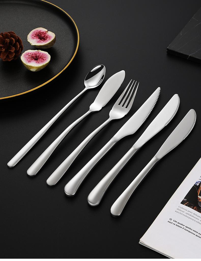 Atacado Talheres Ocidentais de Aço Inoxidável 304 de Alta Qualidade Faca Garfo Colher Colher de Bife Faca e Garfo Domésticos Espessos de Alta Qualidade Comercial