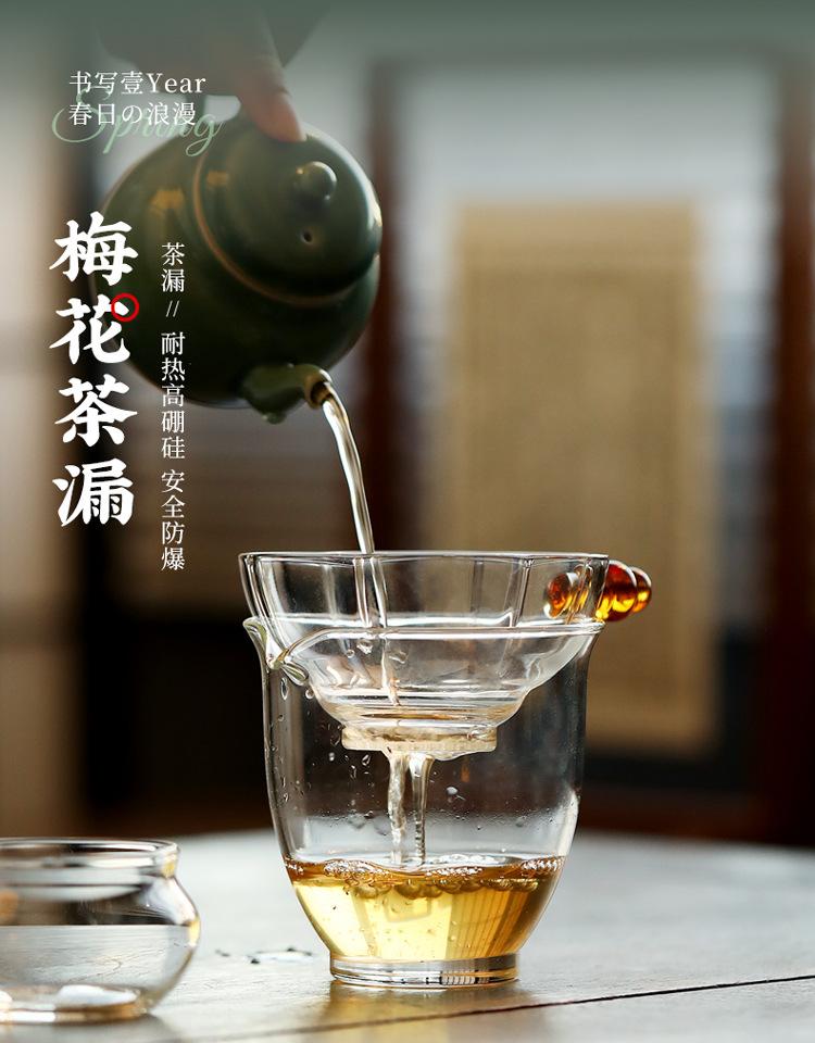 Compre Coador de Chá de Vidro Borossilicato Alto Flor de Ameixeira Conjunto Filtro de Chá Separador de Folhas de Chá Transparente Doméstico Acessórios para Conjunto de Chá Kung Fu no atacado no Joom.pro