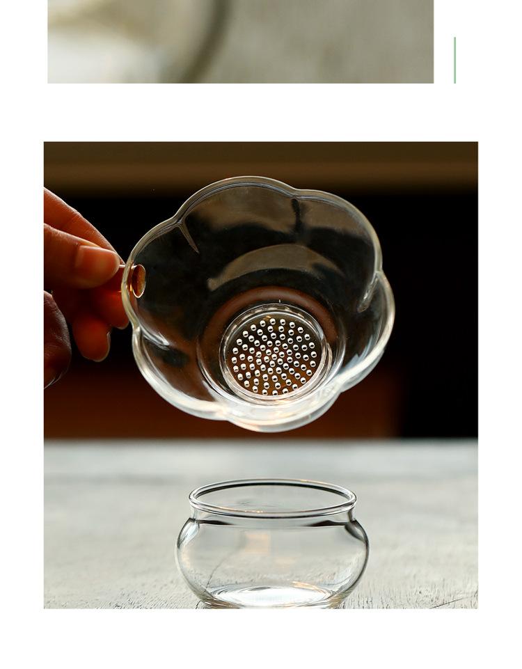 Coador de Chá de Vidro Borossilicato Alto Flor de Ameixeira Conjunto Filtro de Chá Separador de Folhas de Chá Transparente Doméstico Acessórios para Conjunto de Chá Kung Fu