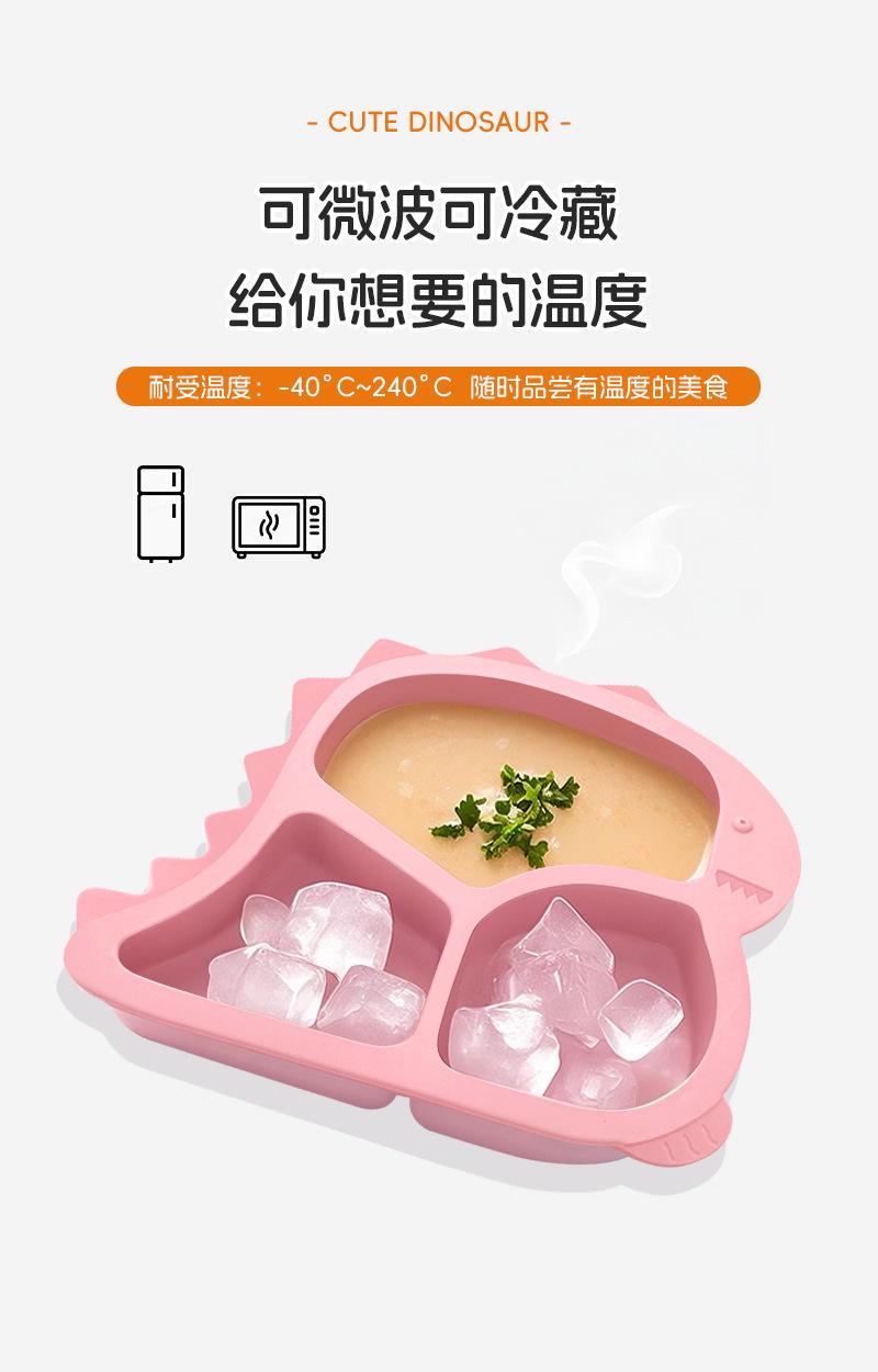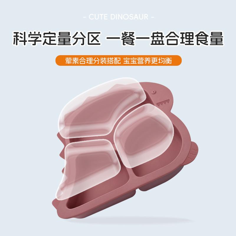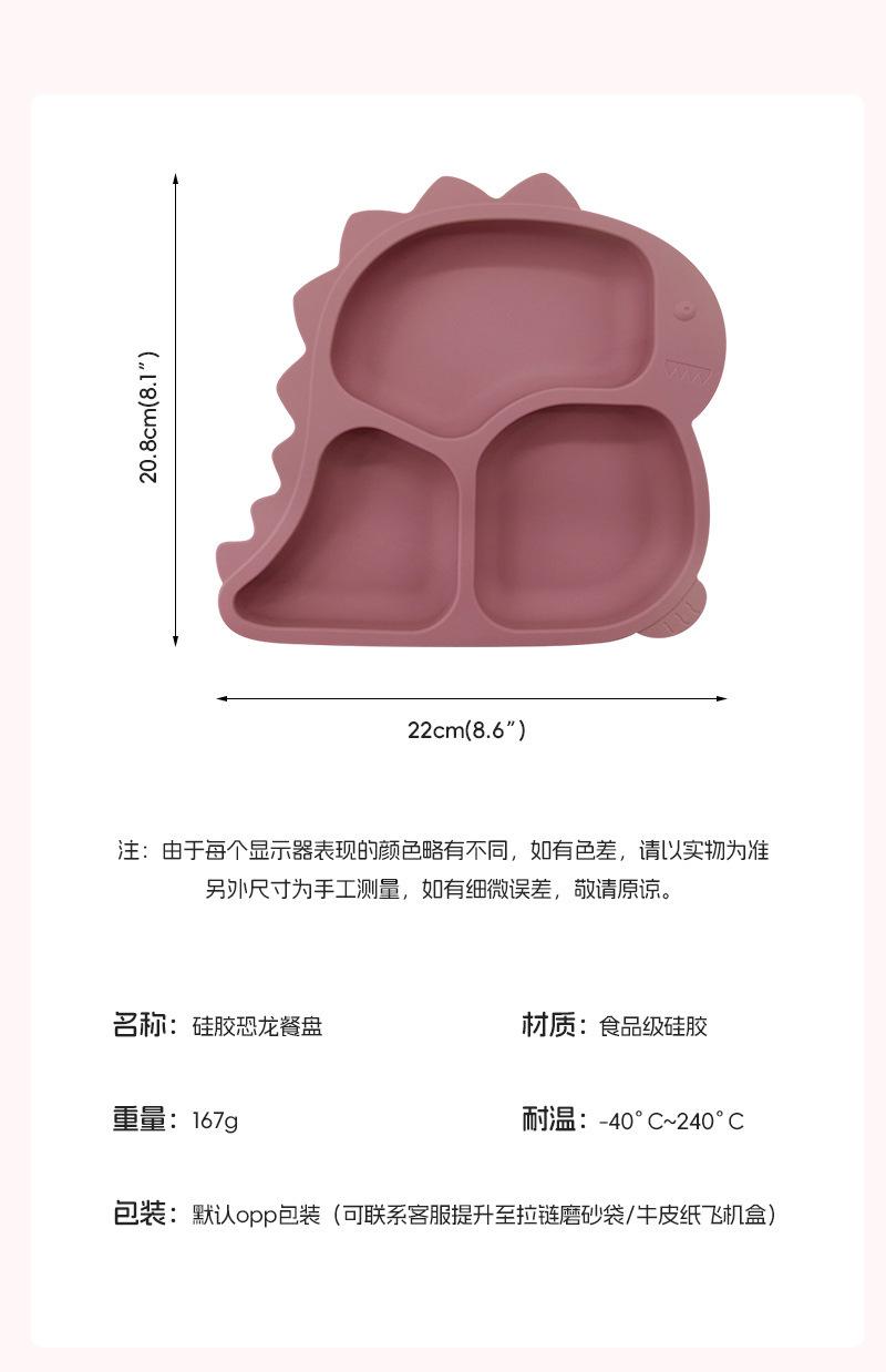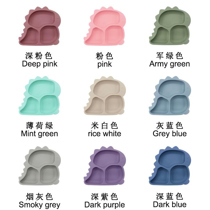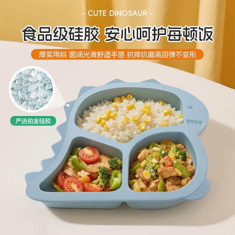 Prato Infantil de Silicone Transfronteiriço Desenho Animado Dinossauro Alimentação Complementar Talheres Bandeja Fácil de Limpar Prato Infantil Dividido