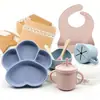 Conjunto de talheres de silicone para bebê garfo colher babador copo de água prato conjunto prato de silicone surpresa caixa cega