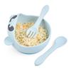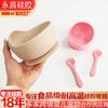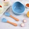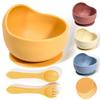 Tigela de sucção de silicone para bebê, alça de madeira, colher de silicone, tigela de sucção forte, tigela de comida para bebê, antiderrapante e anti-queda, tigela de sucção de bebê