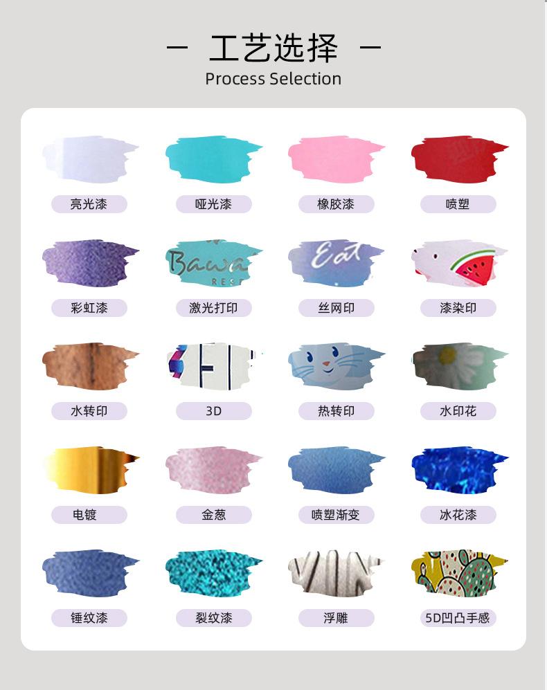 Thermal transfer, laser engraving, silk screen, water transfer printing, water film, 3D printing, 5d printing,...
