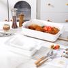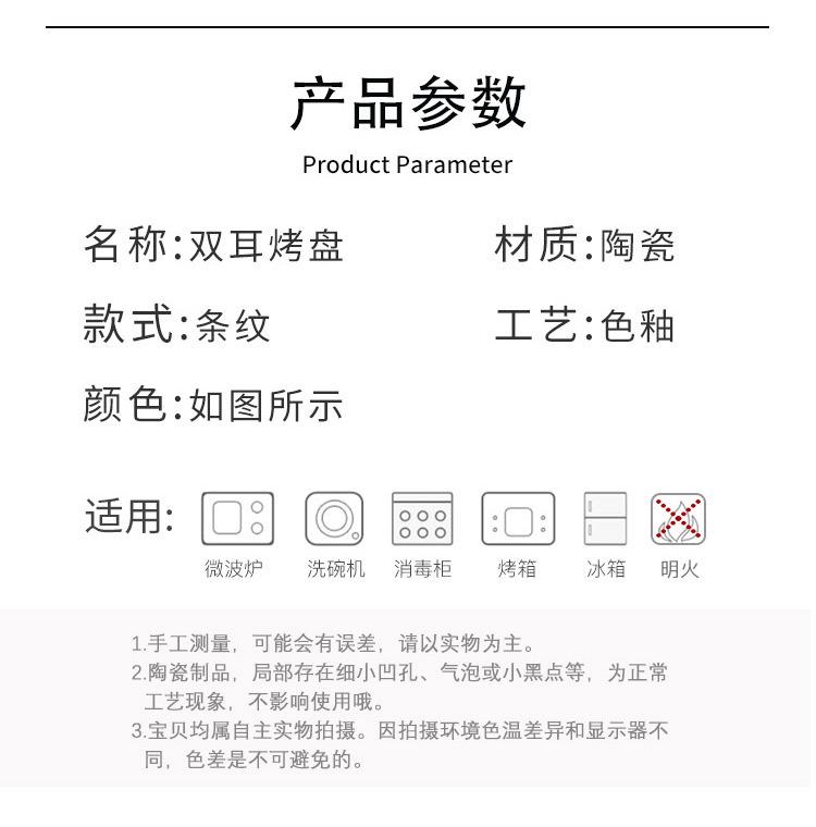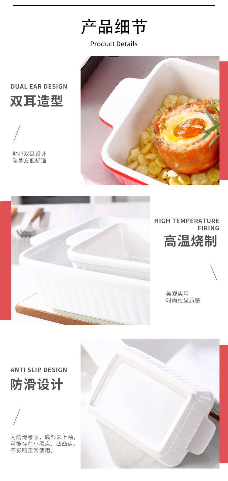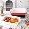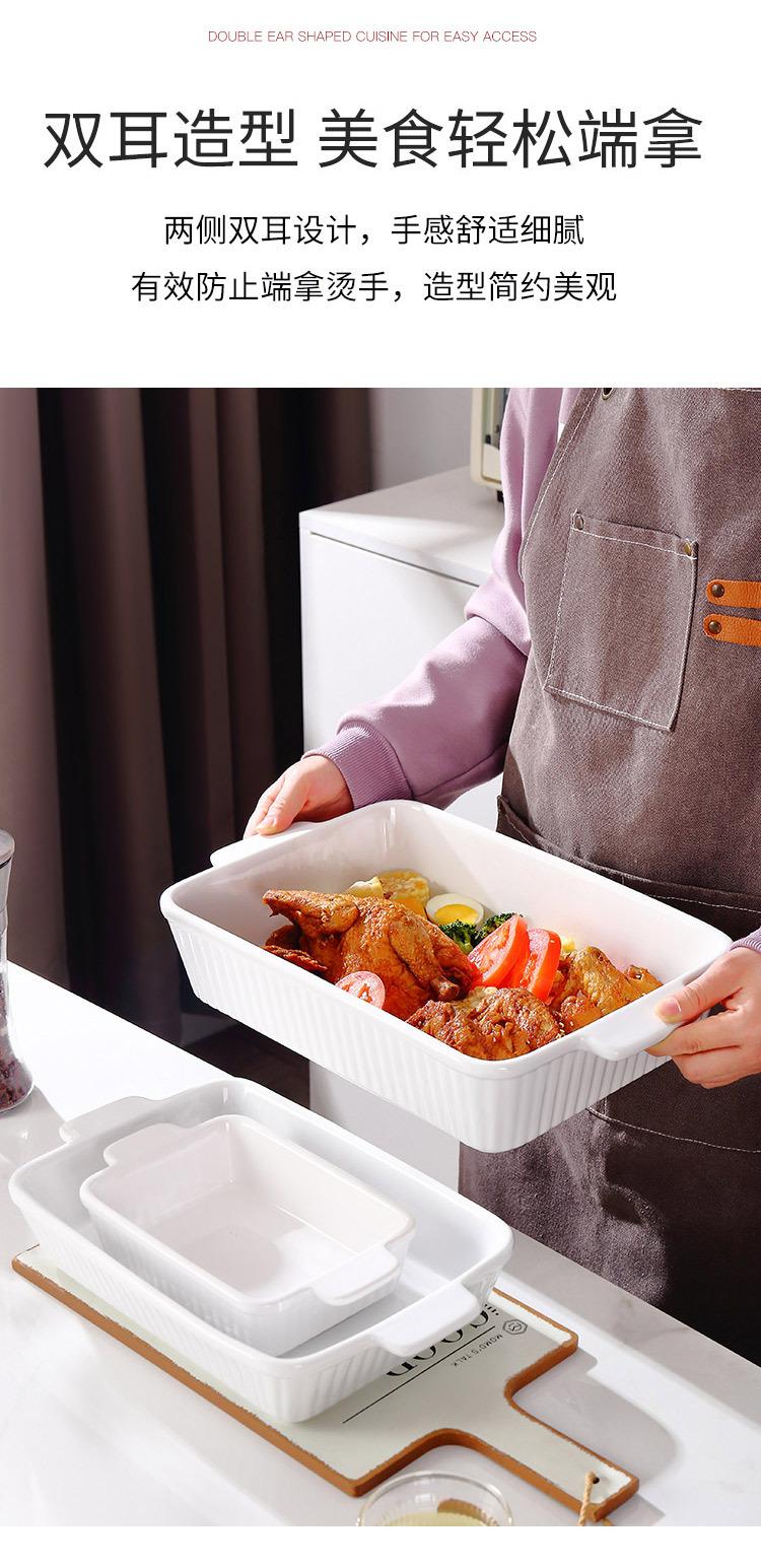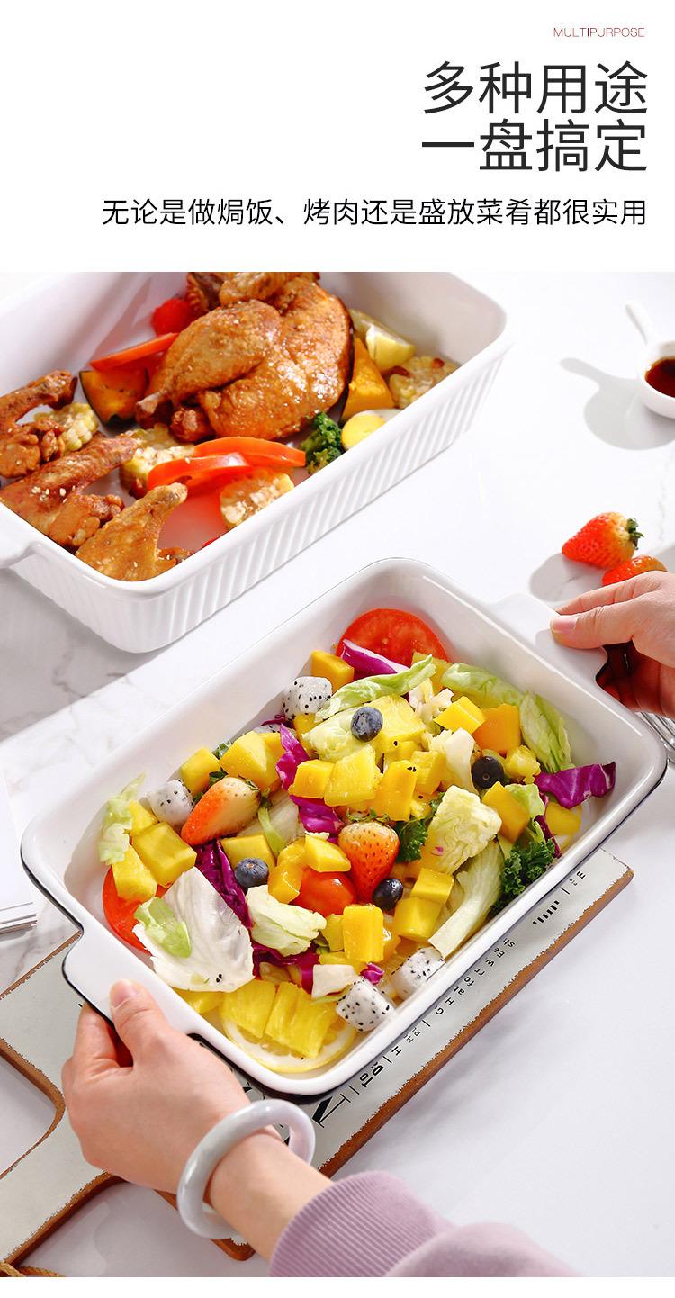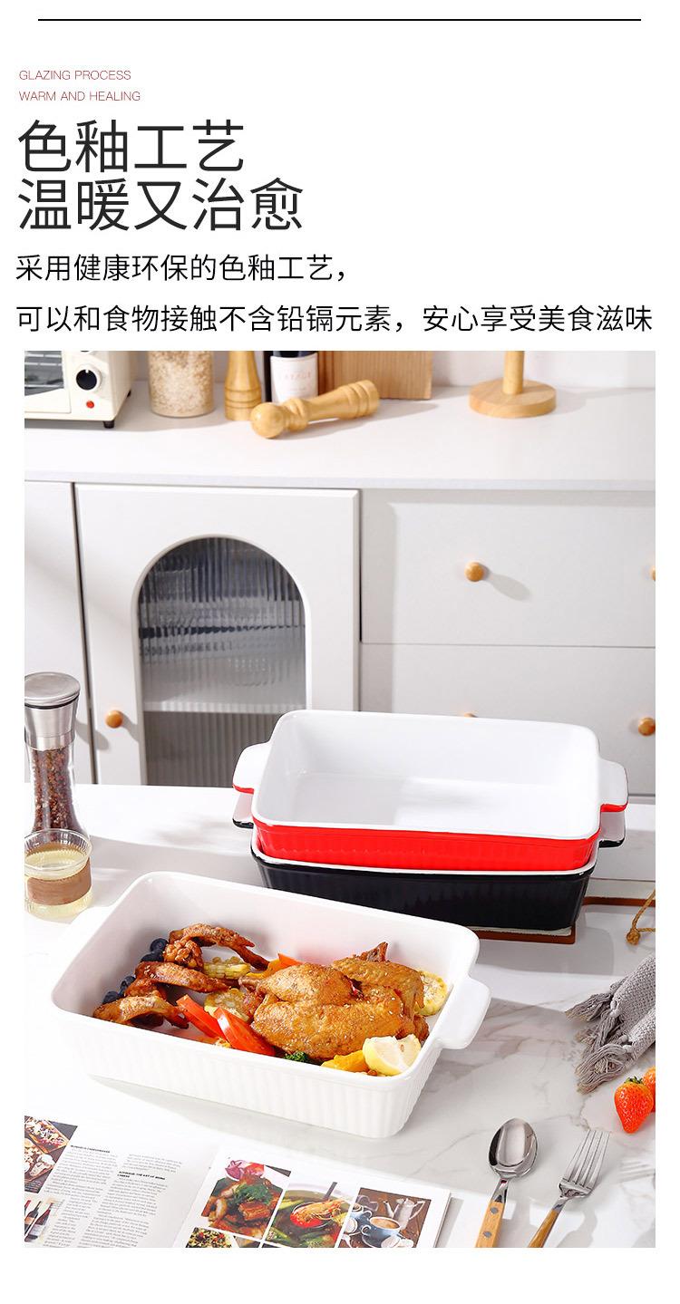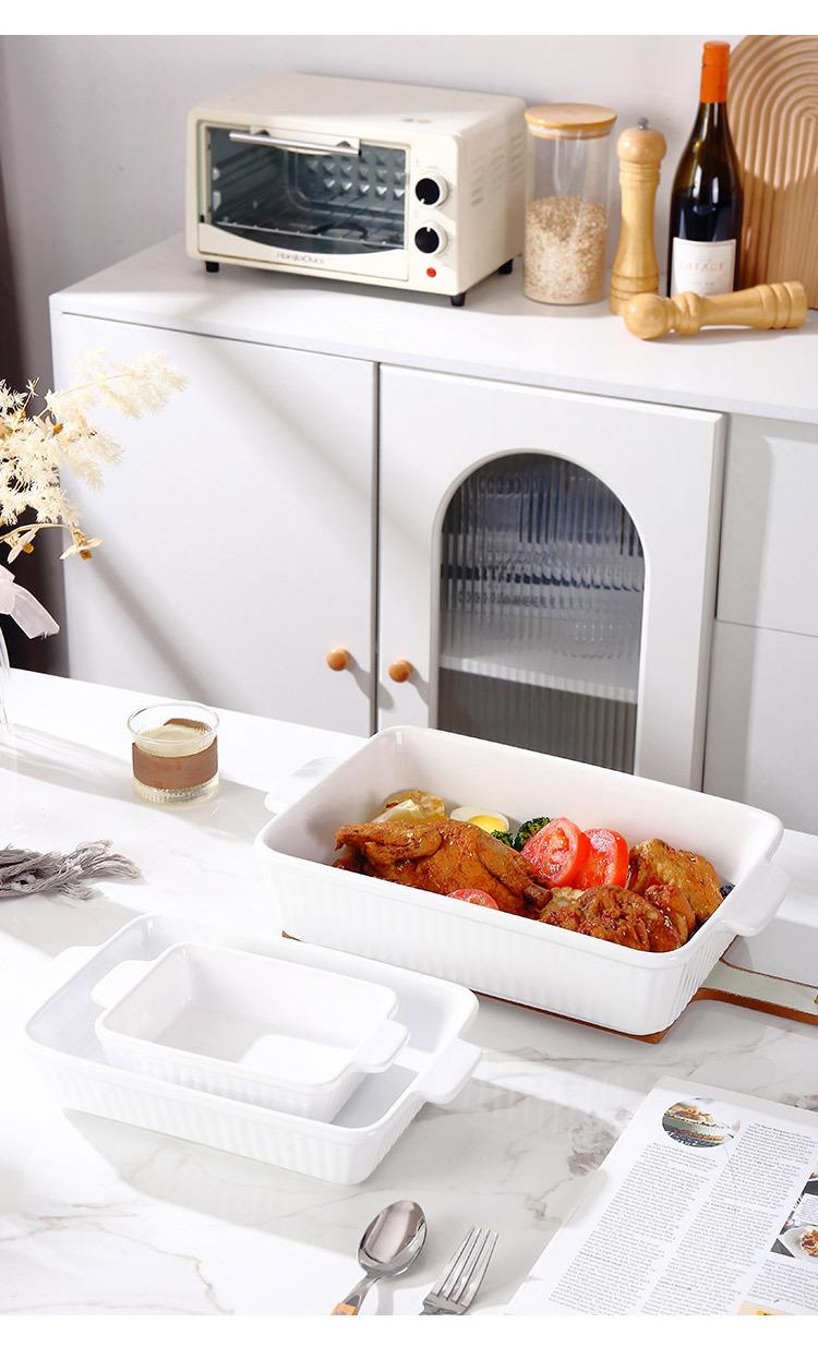 Assadeira Cerâmica Personalizada Transfronteiriça de Orelha Dupla Listrada Retangular de Grande Capacidade para Forno Assadeira Conjunto