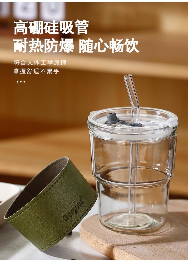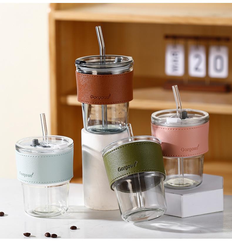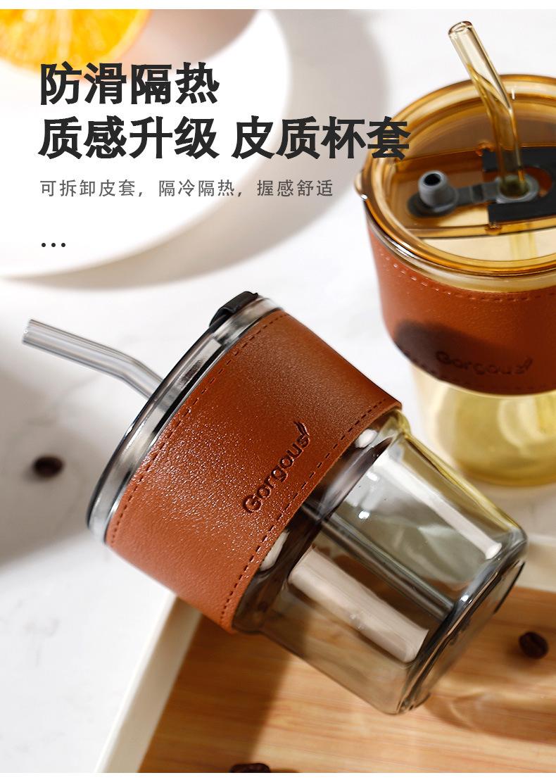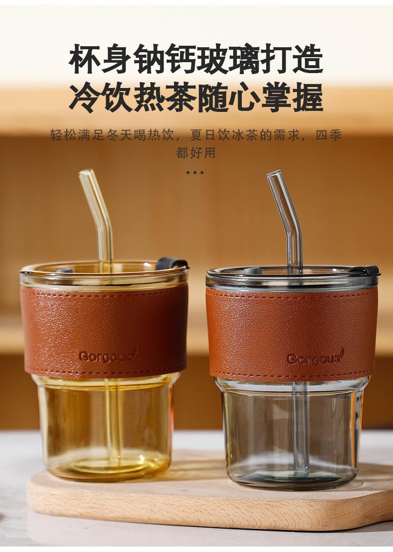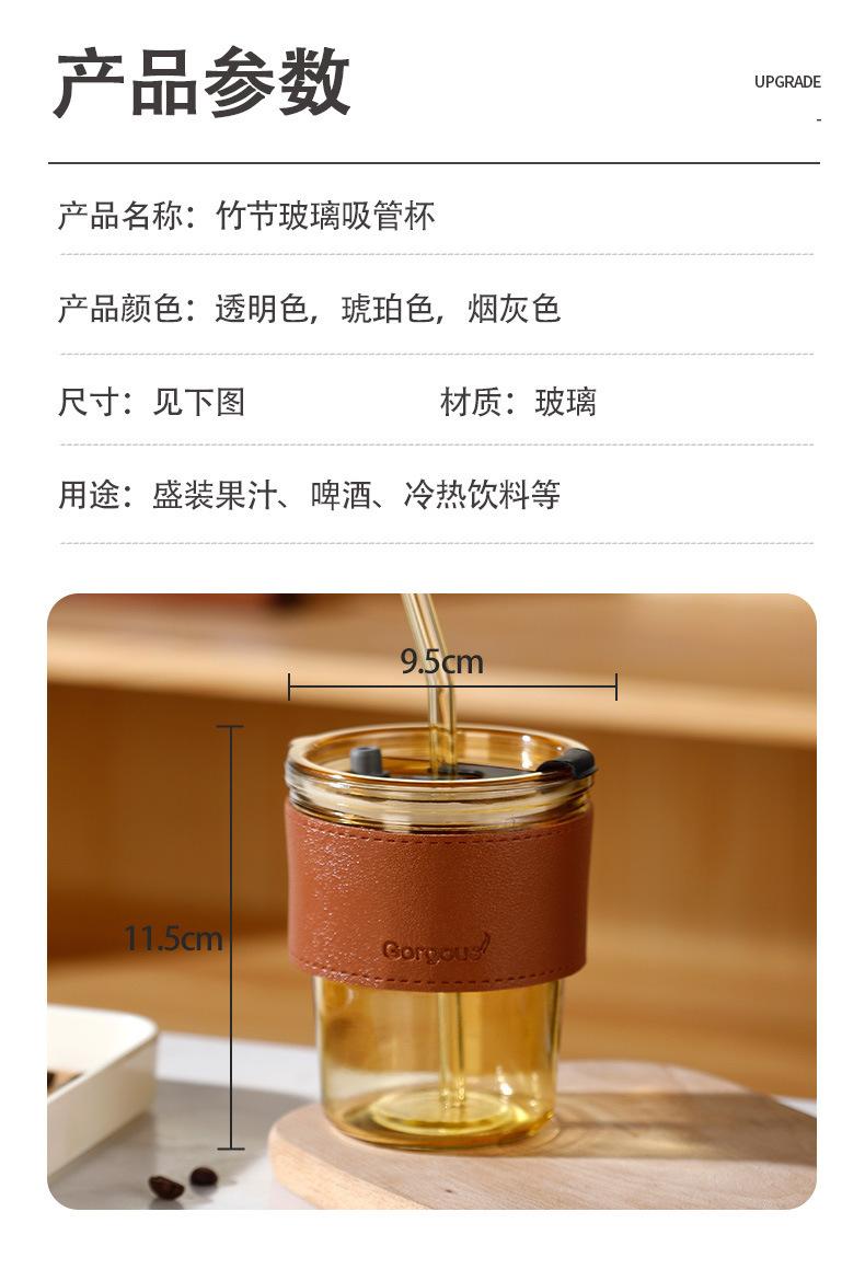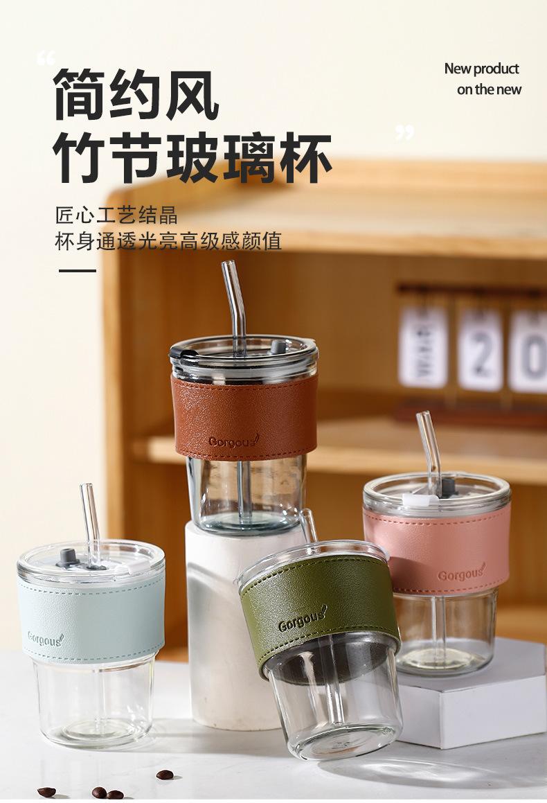 Copo de Vidro com Seção de Bambu Popular Resistente ao Calor Copo com Canudo para Café Estilo Ins Alto Valor Lembrança Presente Copo de Água Estampado