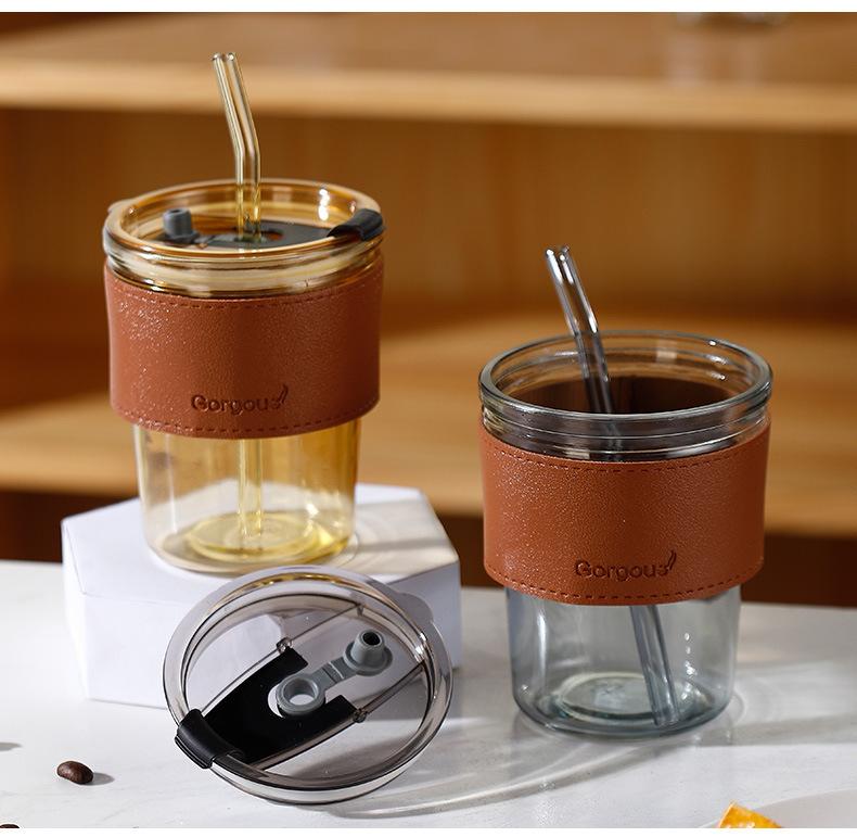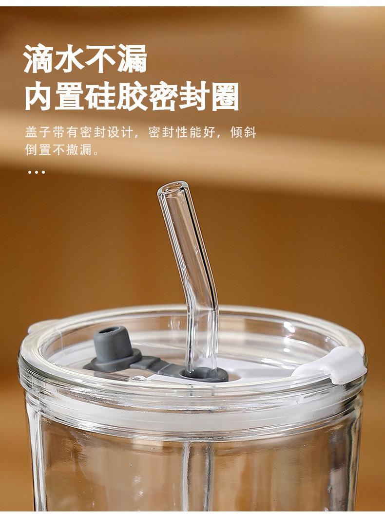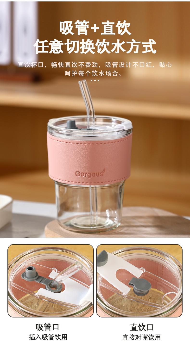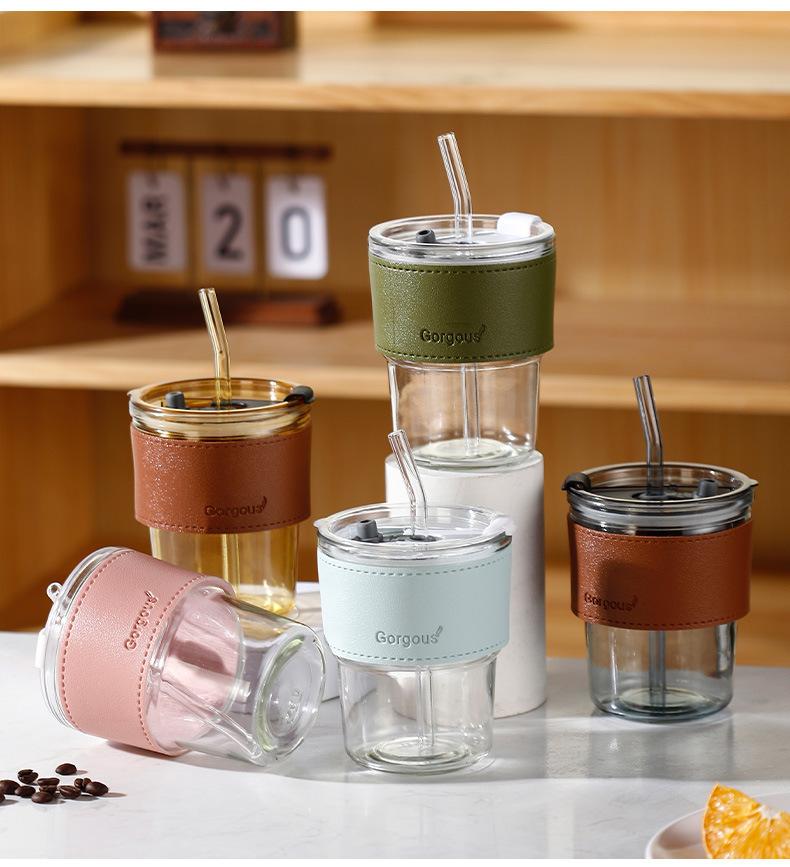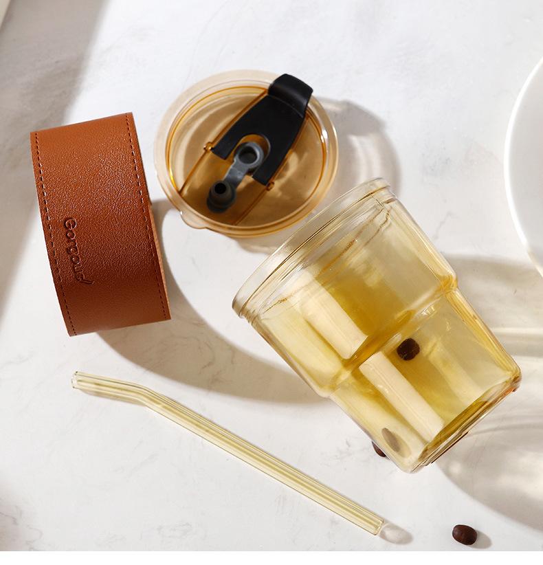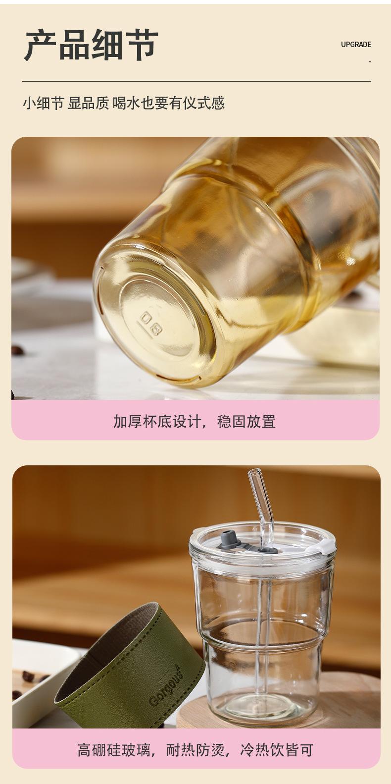 Copo de Vidro com Seção de Bambu Popular Resistente ao Calor Copo com Canudo para Café Estilo Ins Alto Valor Lembrança Presente Copo de Água Estampado