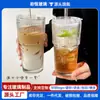 Copo de Vidro Listrado Vertical, Grande Capacidade, Copo com Canudo Estilo Ins com Tampa, Alto Valor Estético, Copo para Beber, Copo para Bebida Fria, Copo de Café