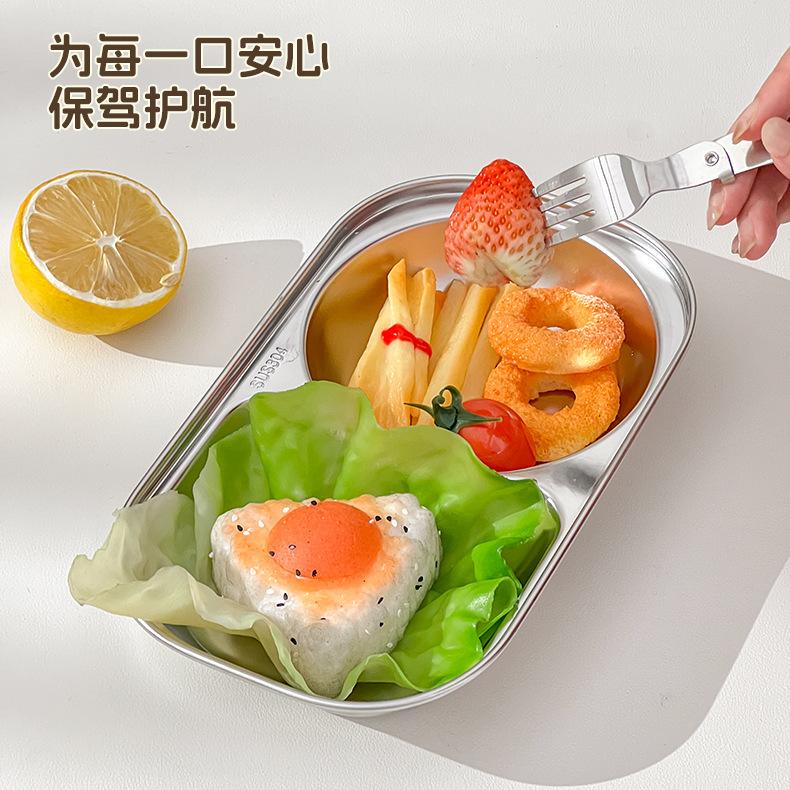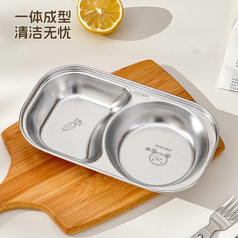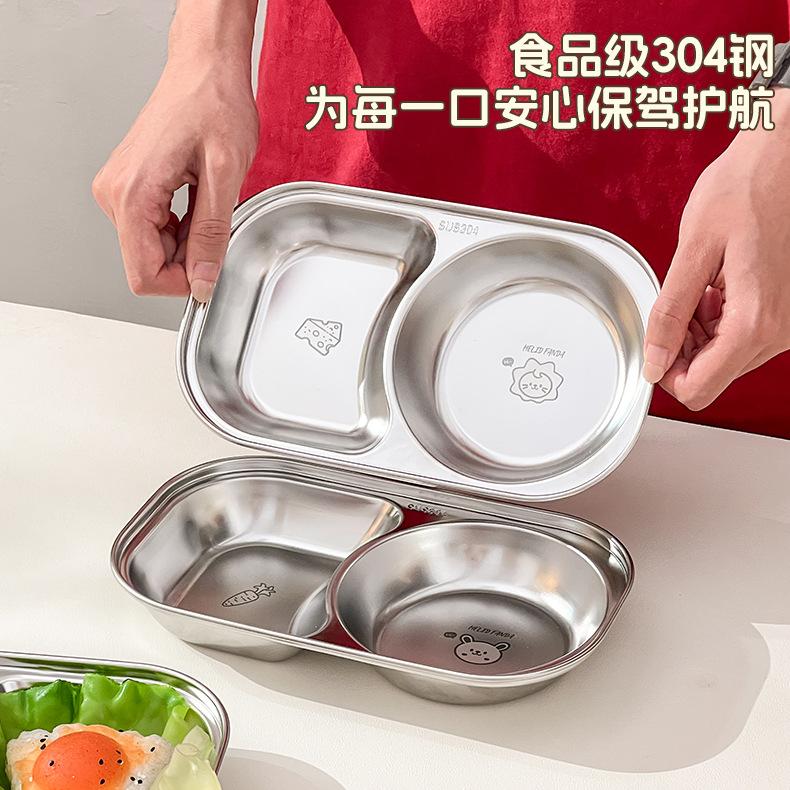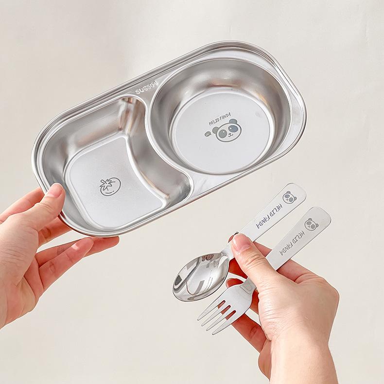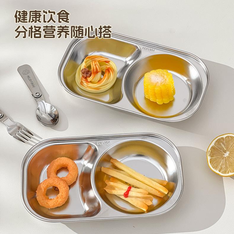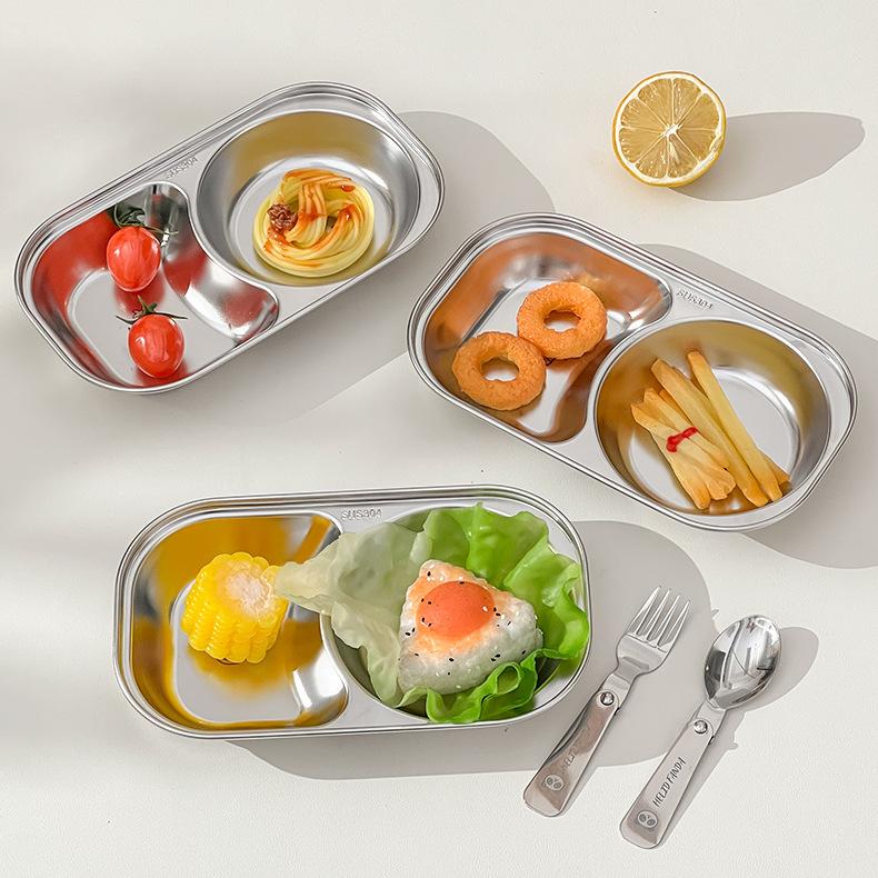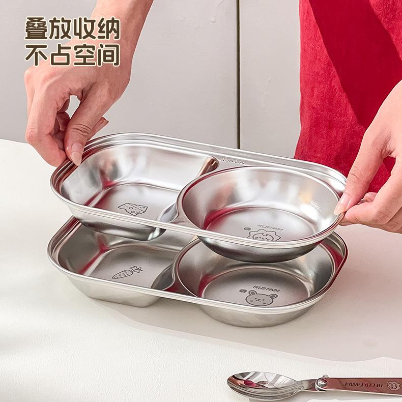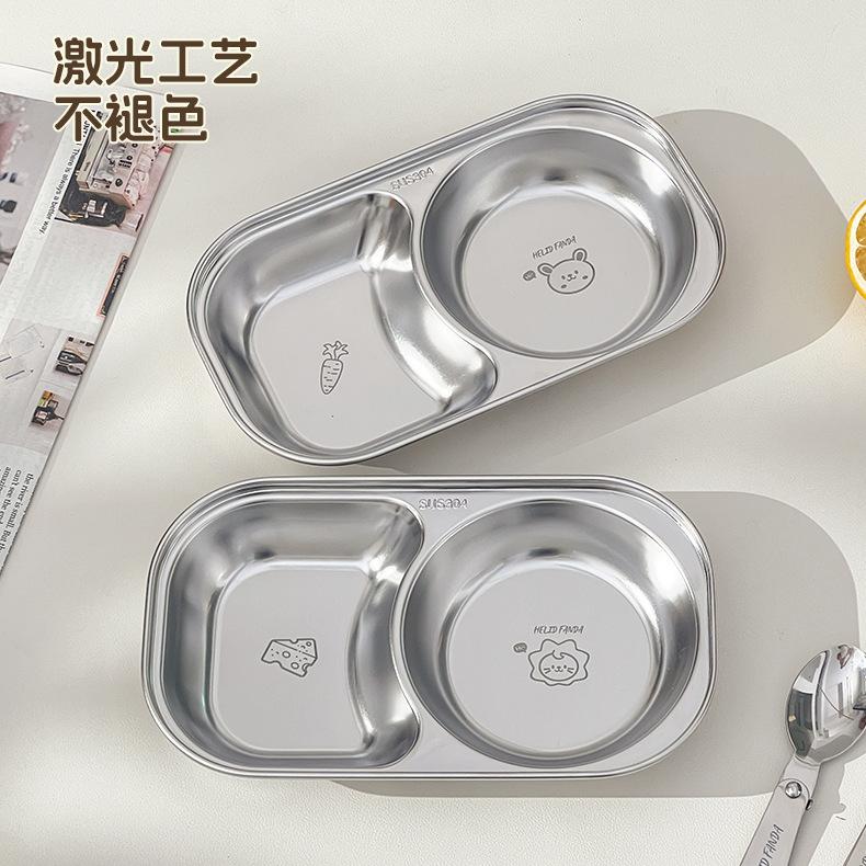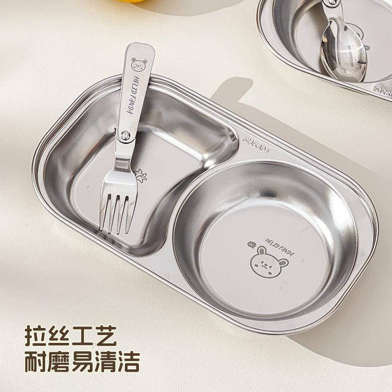Prato infantil aço inoxidável 304 prato para comida de bebê jardim de infância dividido anti-queda tigela de arroz talheres autoalimentação