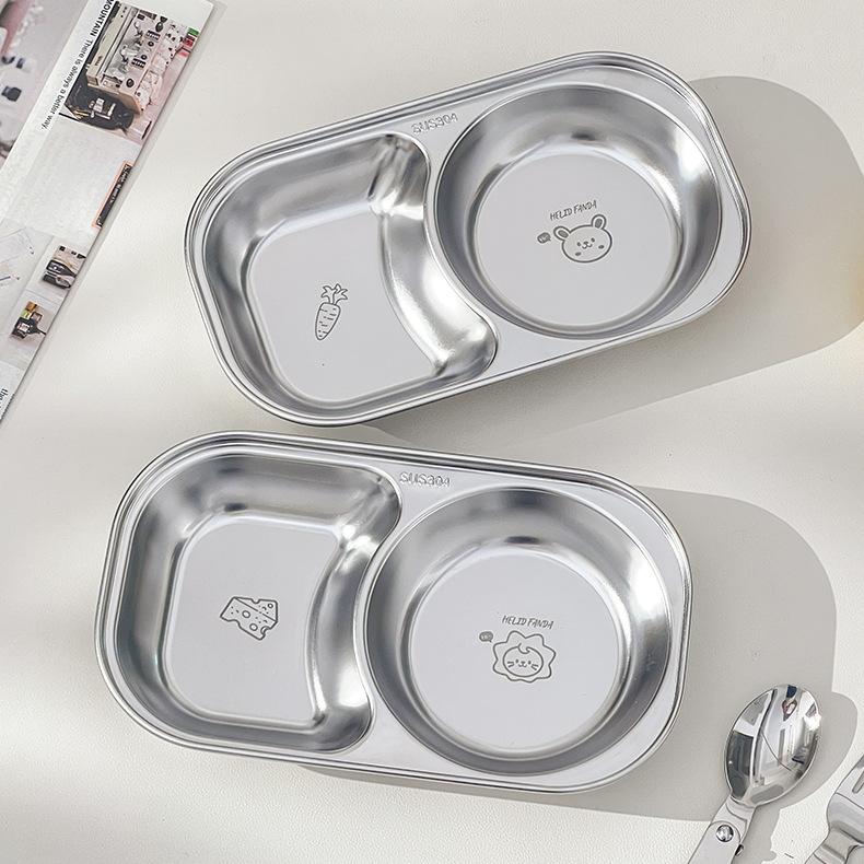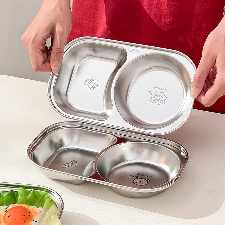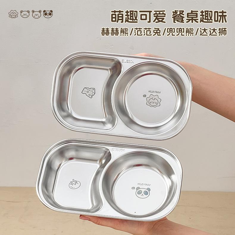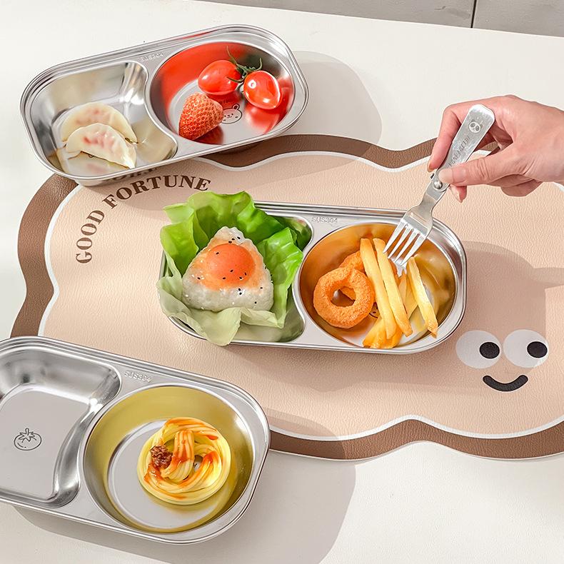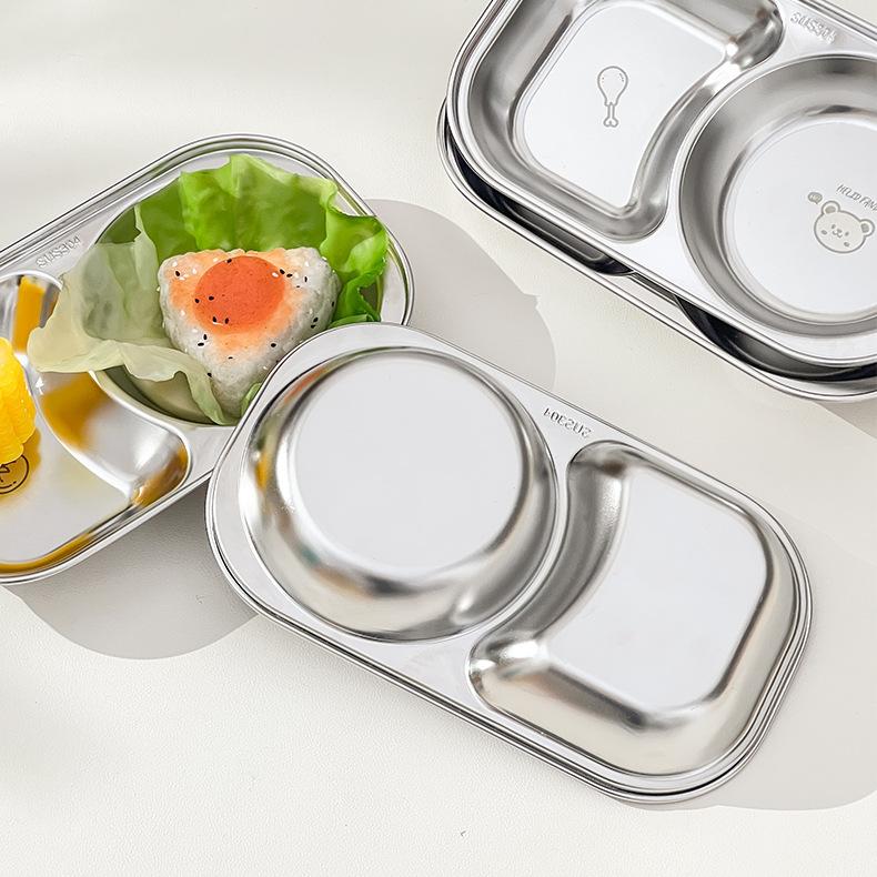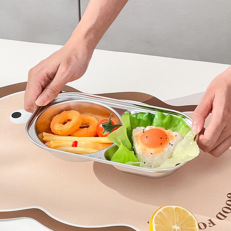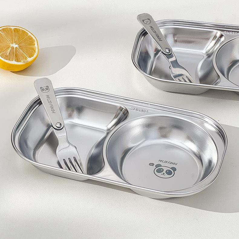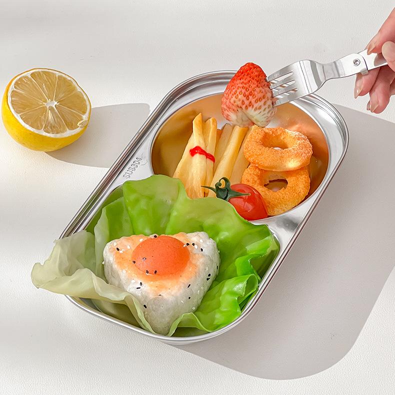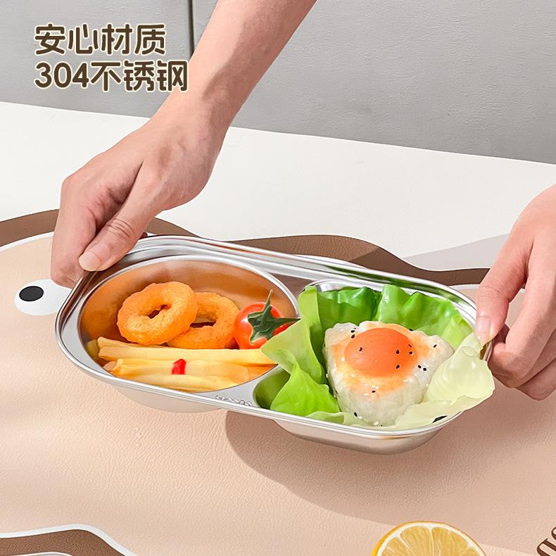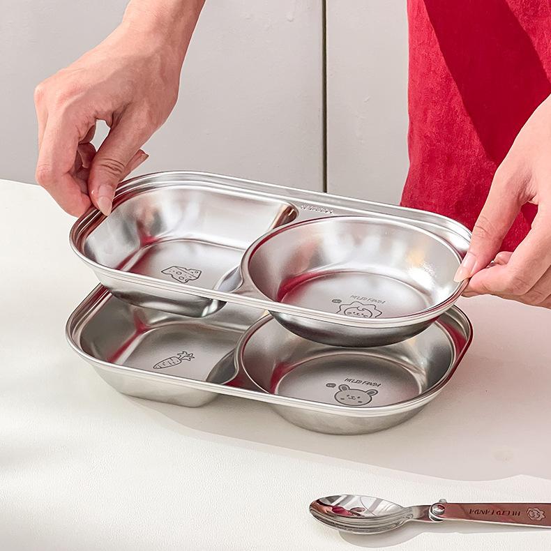 Prato infantil aço inoxidável 304 prato para comida de bebê jardim de infância dividido anti-queda tigela de arroz talheres autoalimentação