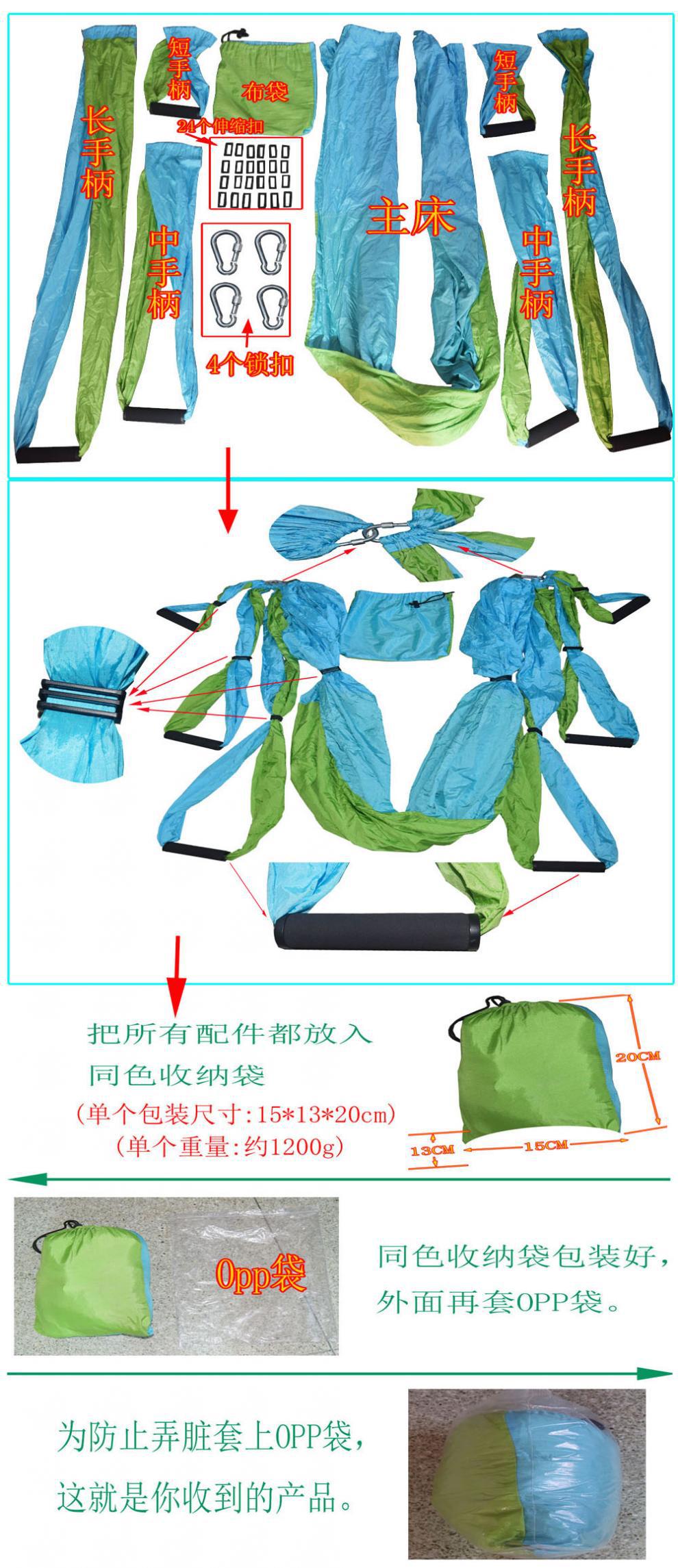 2.O comprimento da rede de ioga antigravidade depois de dobrada e pendurada é de 1,4 a 1,6 metros.Se o topo da viga for maior que 2,7, você precisa adicionarCorda margarida, corda margaridaDisponível em nossa loja, pode ser adquirido separadamente.