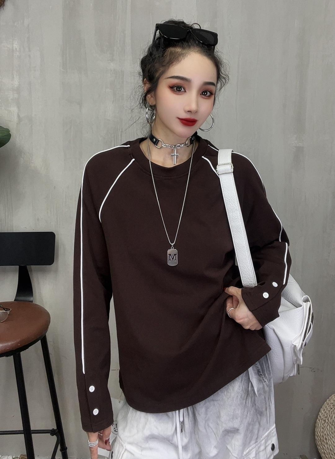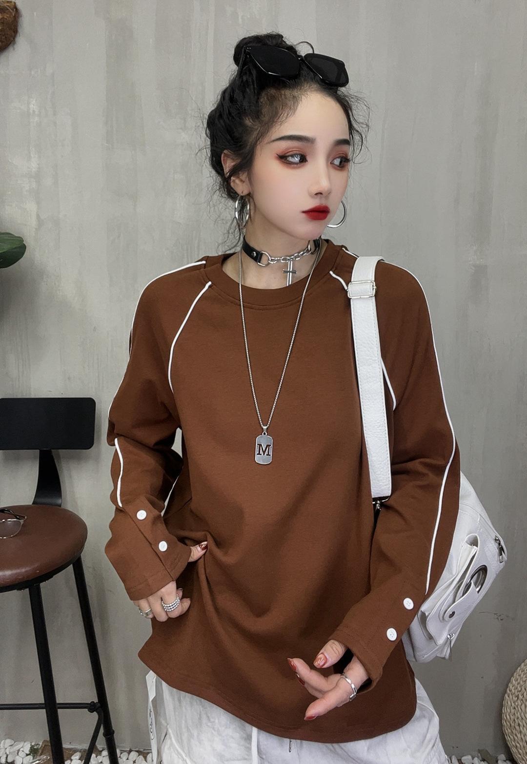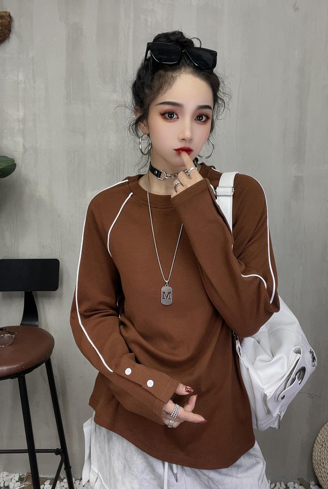 Outono Novo Gola Redonda Casual Manga Longa Camiseta Mulheres Casual Solto Versátil Pulôver Tricotado Escovado Top Atacado