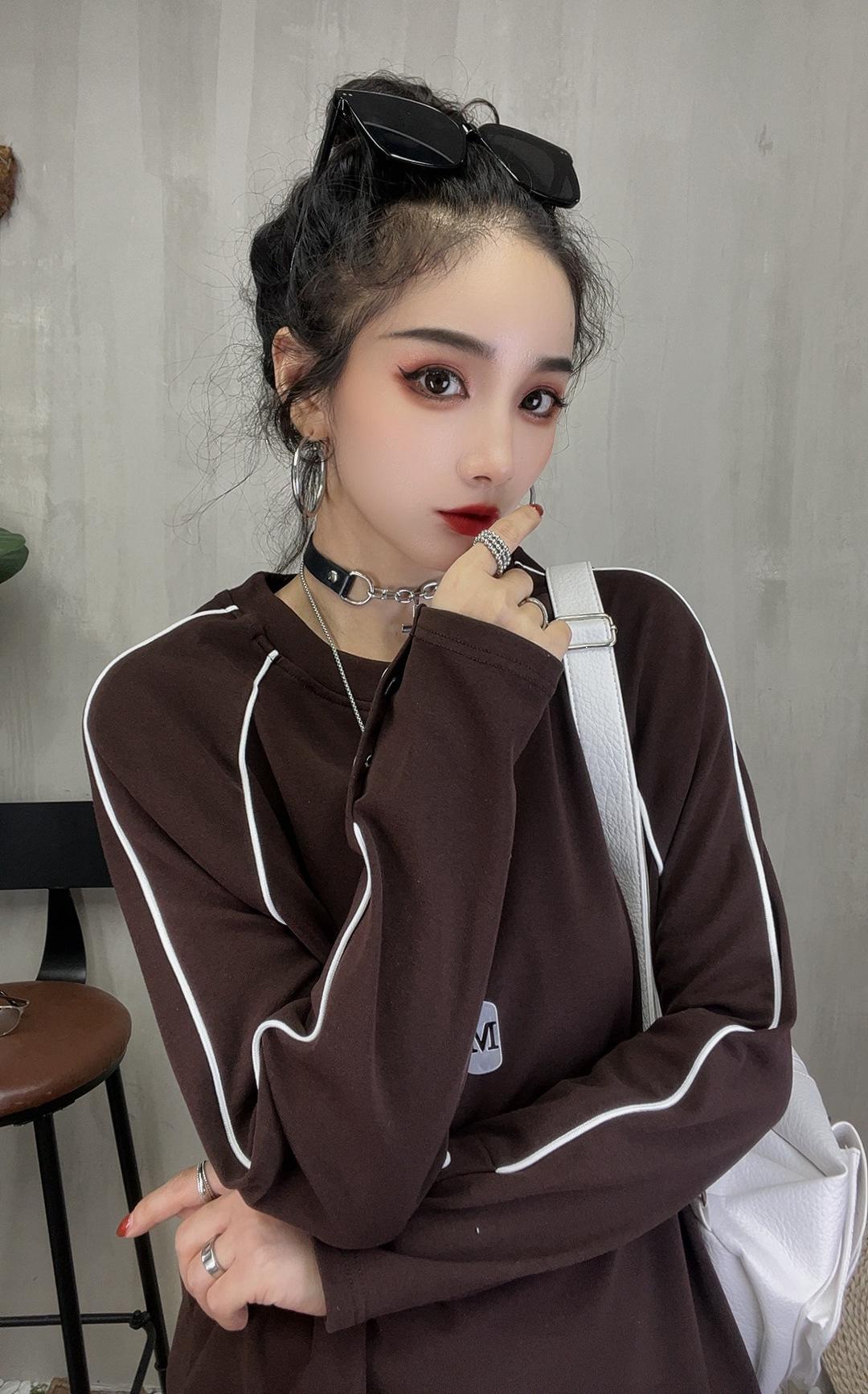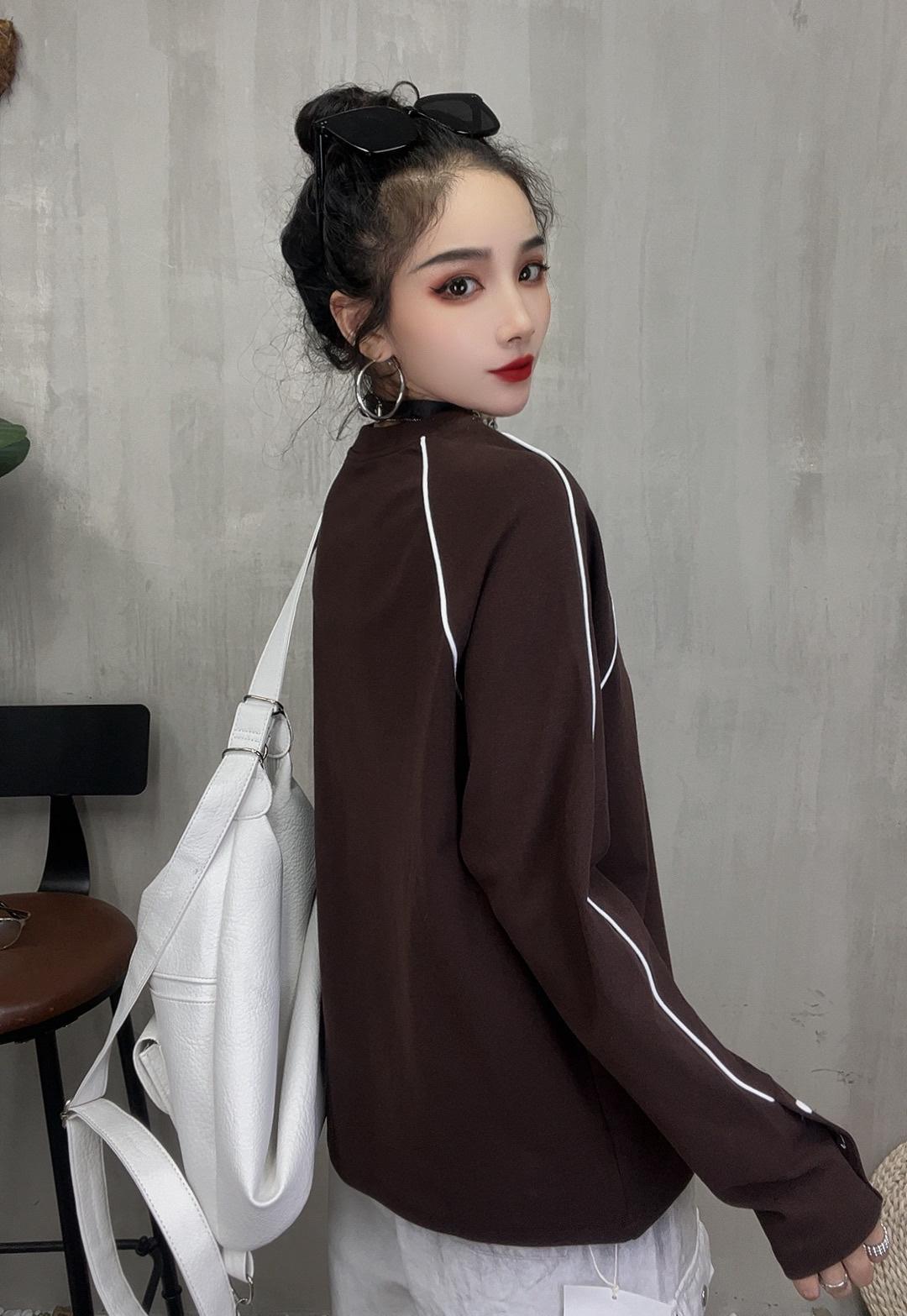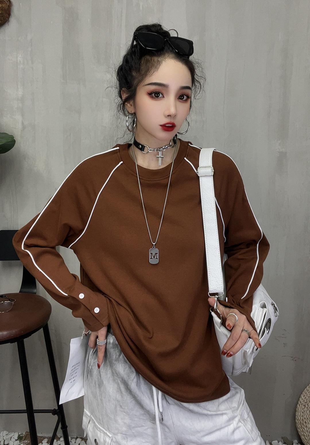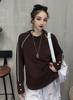 Outono Novo Gola Redonda Casual Manga Longa Camiseta Mulheres Casual Solto Versátil Pulôver Tricotado Escovado Top Atacado
