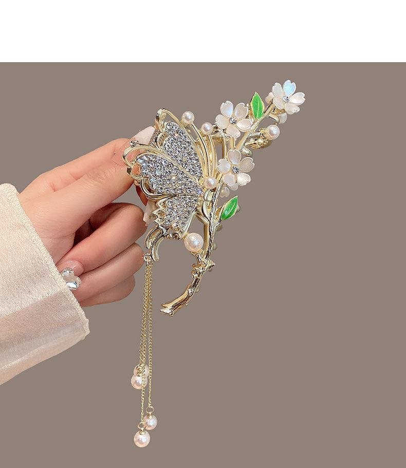 Alta qualidade borboleta Tassel Hairpin Mulheres Costas da Cabeça Disco Cabelo Grab Clip Grande Luz Luxo Tubarão Clipe Cocar Hairpin