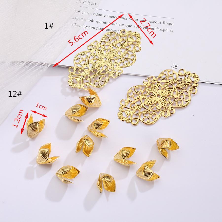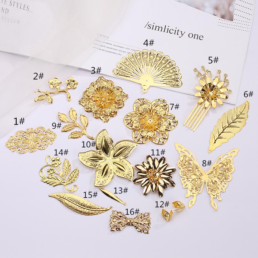 【Nome】Peças de Flores de Metal Vazado Folhas DIY Borla Coroa de Fênix Grampo de Cabelo Feito à Mão Acessórios de Cocar Estilo Antigo Materiais Acessórios de Cabelo de Noiva Hanfu