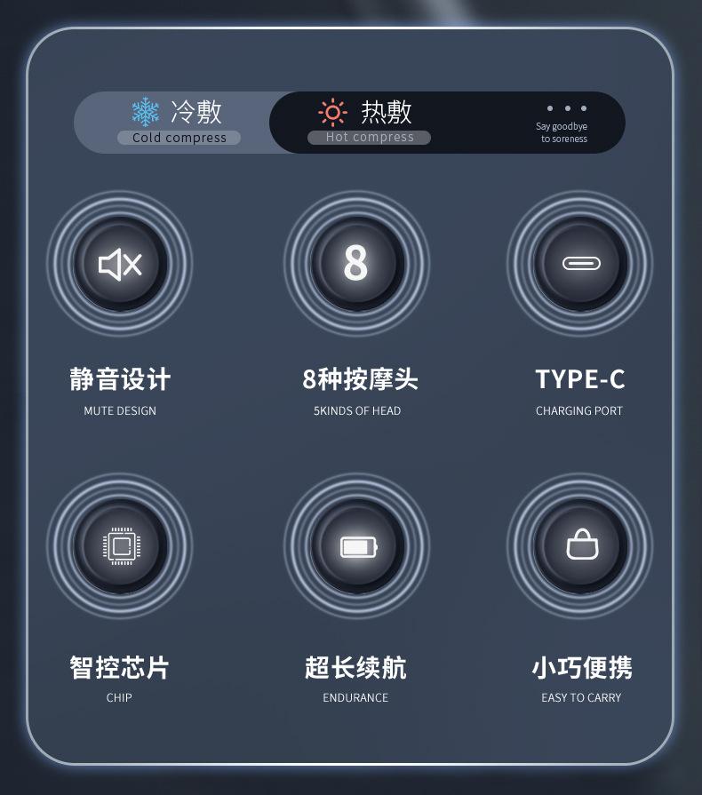 Compressa quente e fria Mini pistola de fáscia doméstica portátil pequena fitness relaxante muscular massagem elétrica 8 cabeças fáscia