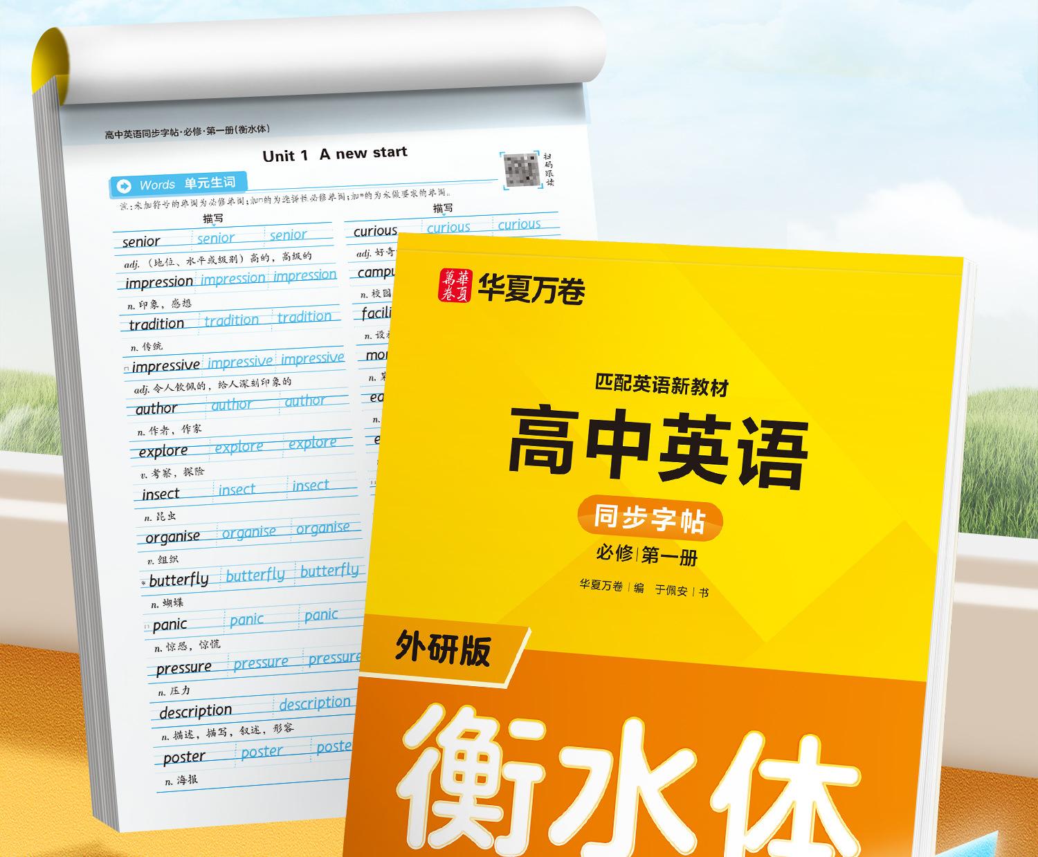 Escola Secundária Huaxia Wanjuan Inglês Caderno de Caligrafia Sincronizado Estilo Hengshui Edição de Pesquisa Estrangeira Curso Obrigatório Um Livro Didático do Ensino Médio Inglês Sincronizado