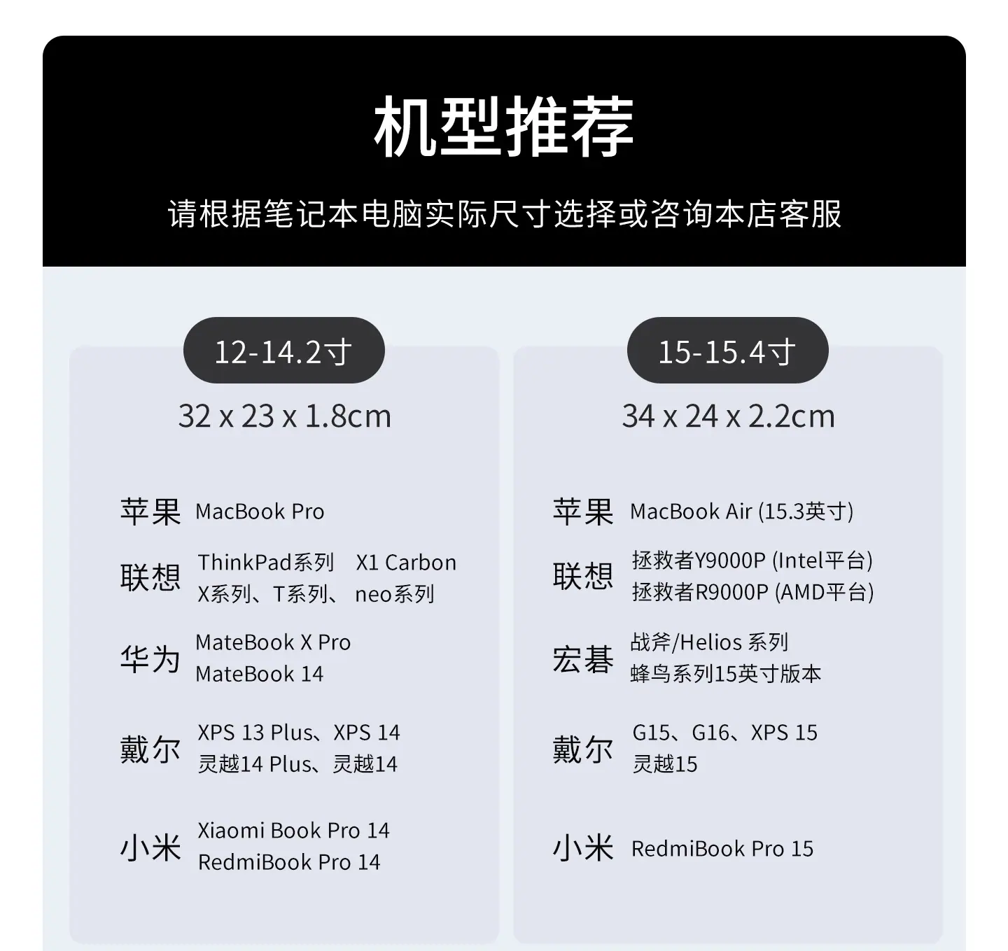 14 inch = retail size 15-15.4 inch