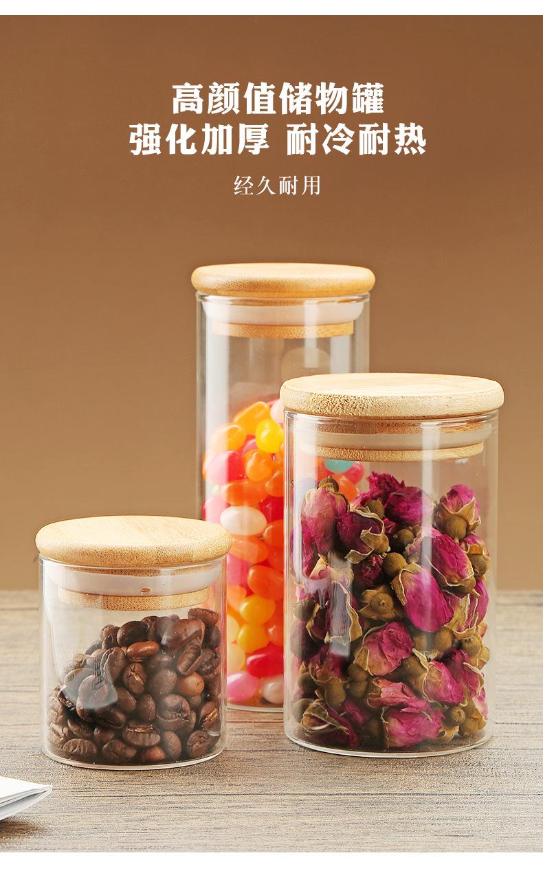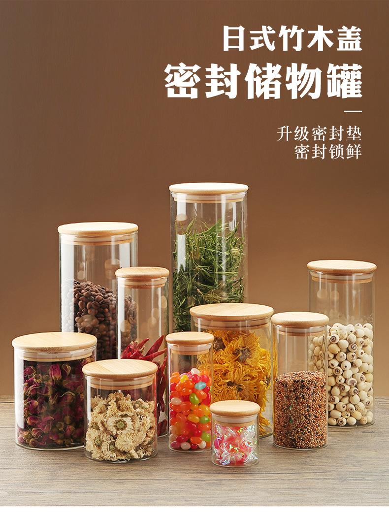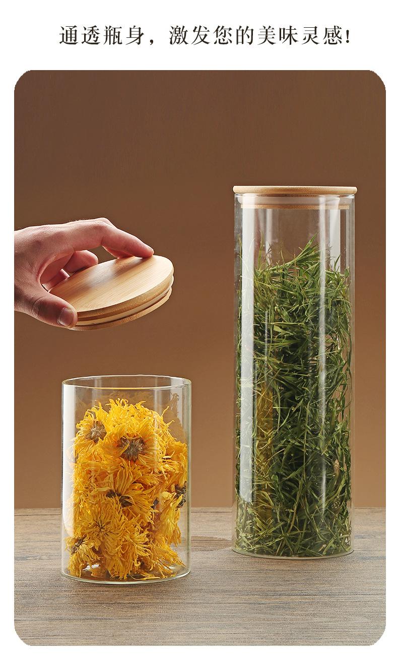Pote de Armazenamento de Vidro Alto Borossilicato Transparente Pote de Vidro para Chá com Tampa Pote de Armazenamento de Madeira de Bambu Armazenamento Cozinha Diária