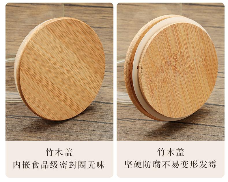 Round bamboo wood lid, diameter 6.5cm*height 10cm, capacity 250ml; transparent