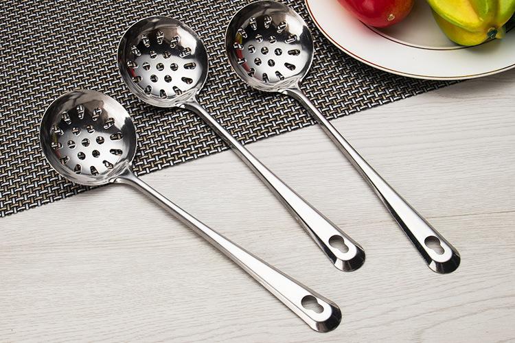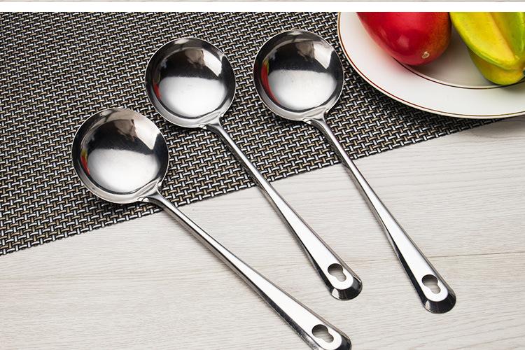 Concha de sopa de aço inoxidável com cabo longo para uso doméstico, colher para panela quente, concha para sopa, escumadeira, utensílio de cozinha para cozinhar, colher para sopa grossa, conjunto para escorrer sopa, atacado de fábrica