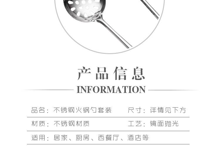 Spoon 23.5cm * 5.8cm, Colander 23.5cm * 5.8cm, Spoon 22cm * 6.1cm, Spoon 26cm * 6.8cm, Spoon 26.4cm, Soup leak...