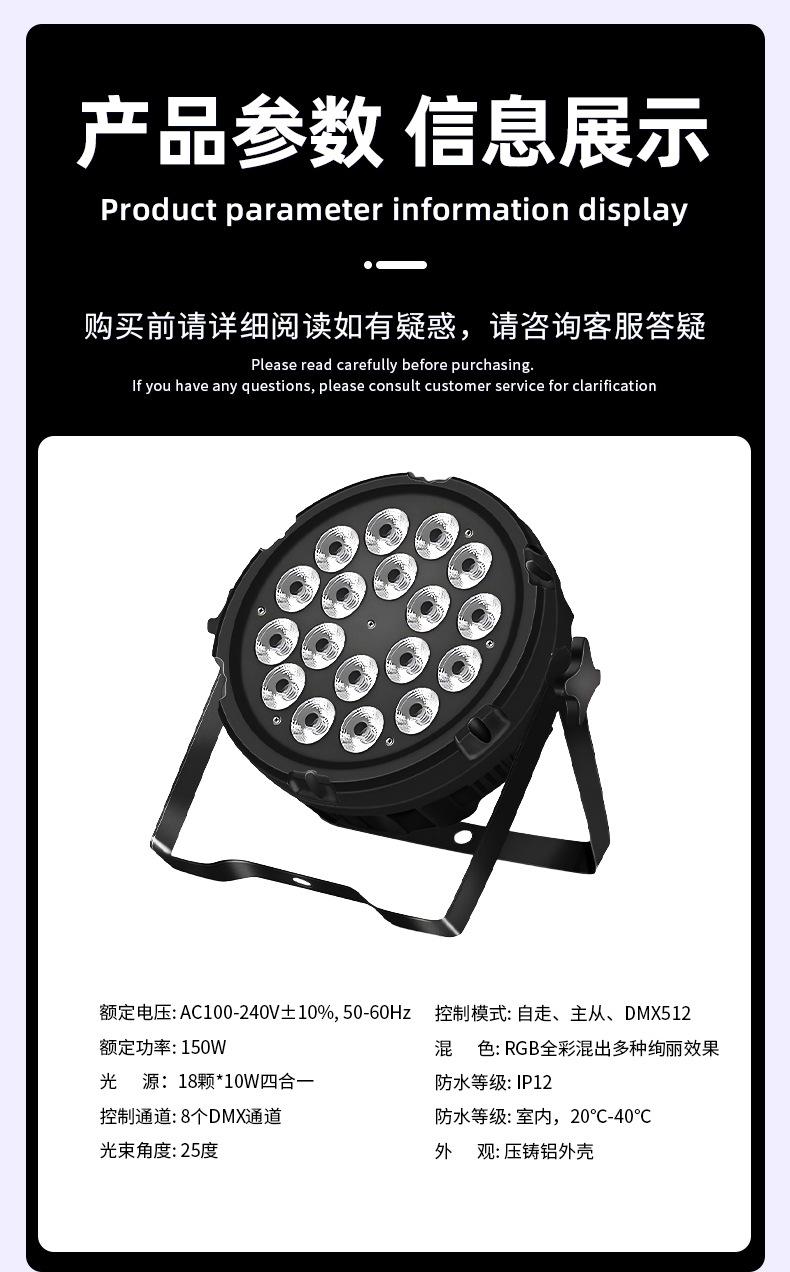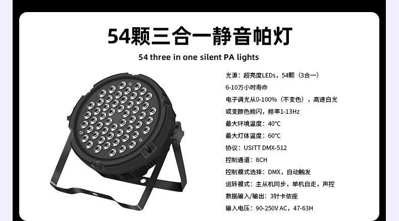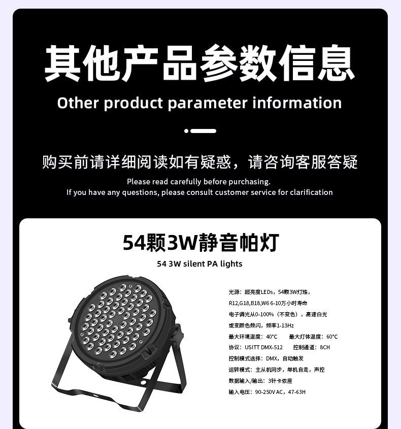 54 three-in-one silent par lights, 18 four-in-one ultra-thin par lights, 54 3W Silent Par Lights, Four-eye COB Silent Par Light