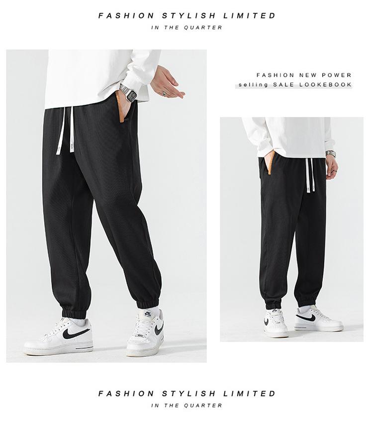 Calças esportivas casuais da moda masculina popular estilo coreano que combinam com tudo, calças de moletom com amarração no tornozelo, novas calças folgadas da moda de marca plus size