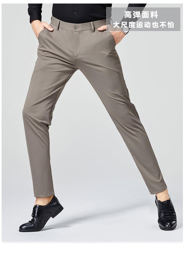Calças Masculinas de Alta Qualidade 2025 Primavera e Verão Slim Reta Casual de Negócios Calças Sociais Masculinas Stretch Resistentes a Amassados