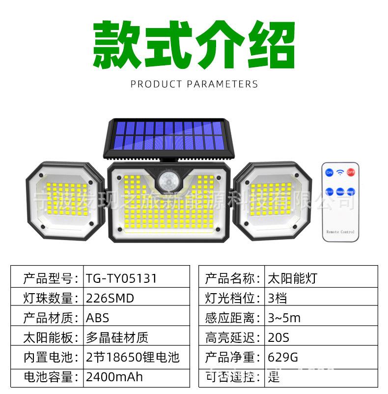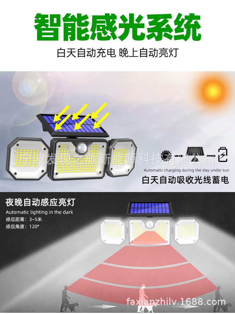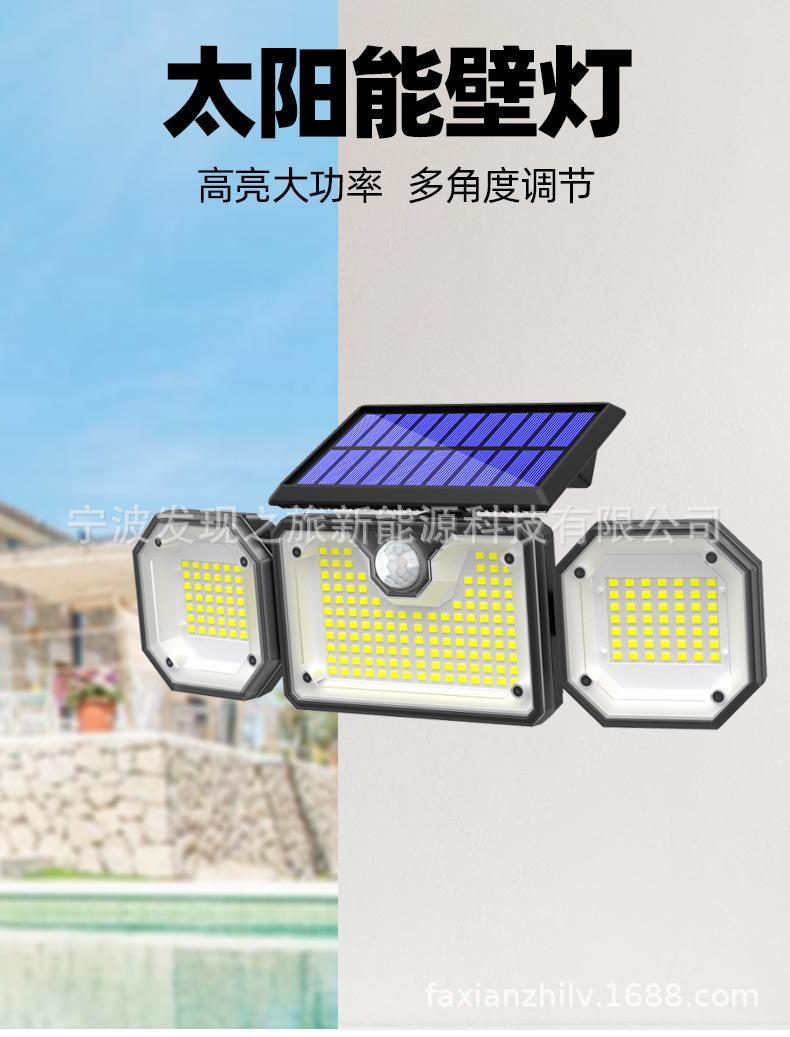 【Nome do Produto】:Luminária de Parede Solar de Três Cabeças Sem Controle Remoto