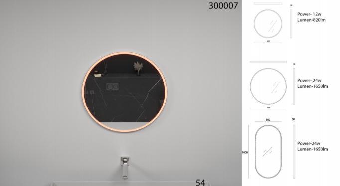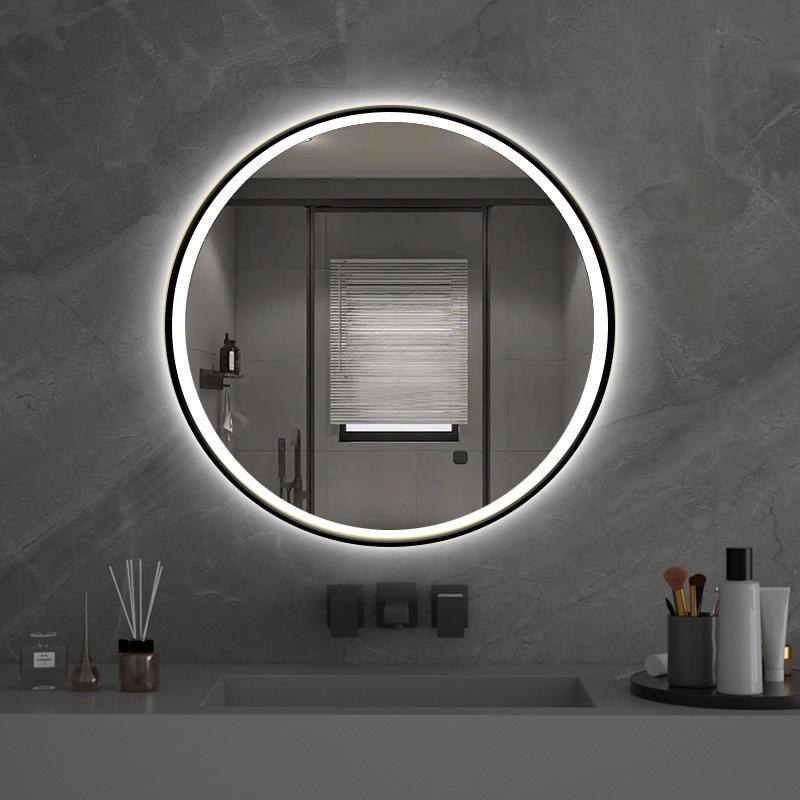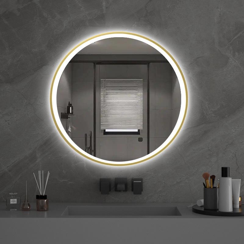 Espelho de Banheiro Antiembaçante Montado na Parede, Redondo Sensível ao Toque Inteligente Personalizado com Luz LED Ajustável