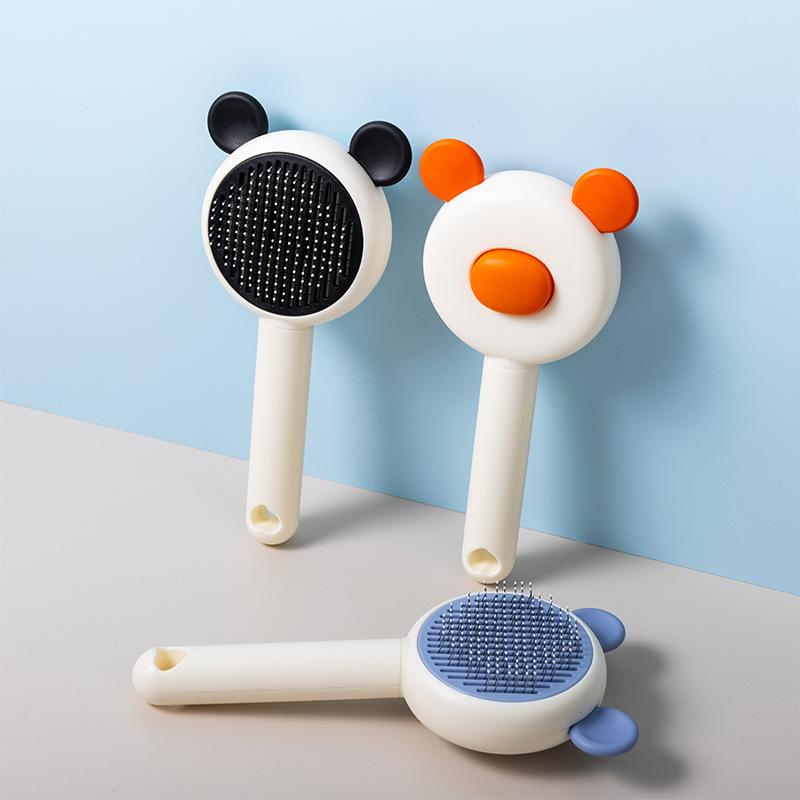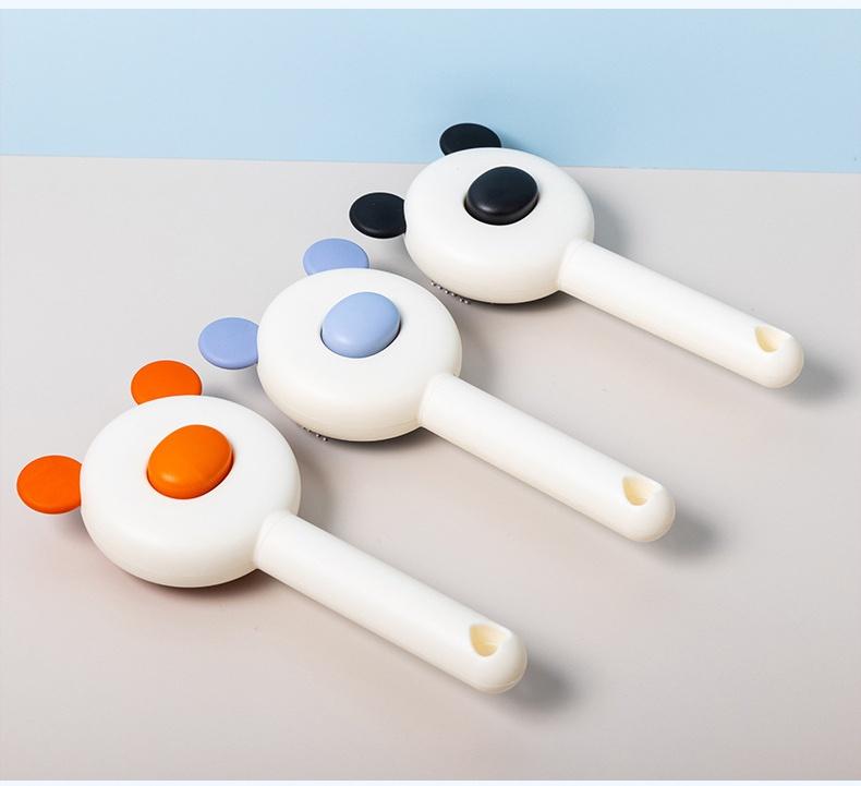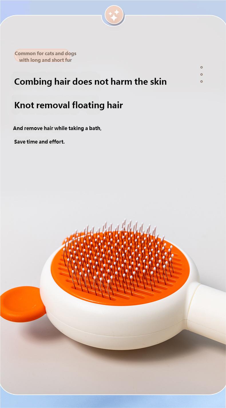 Botão de limpeza com um clique: Escova para gatos com botão de liberação, você só precisa simplesmente apertar o botão e o pelo será super simples removido da escova para pelos de gato.. E nossa escova de tosa para cães é lavável, o que pode ser mantido limpo.