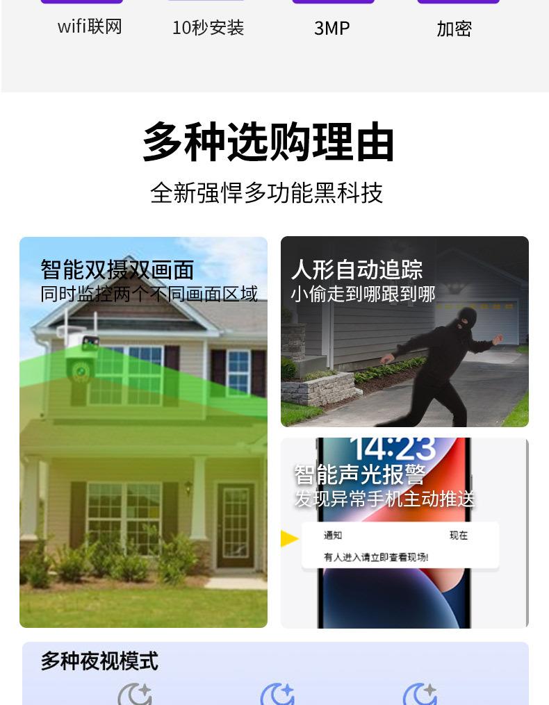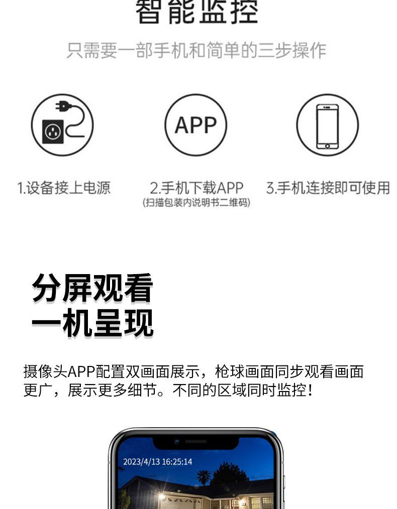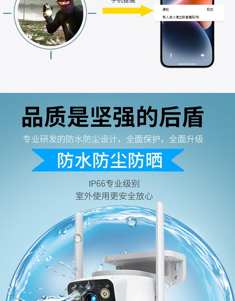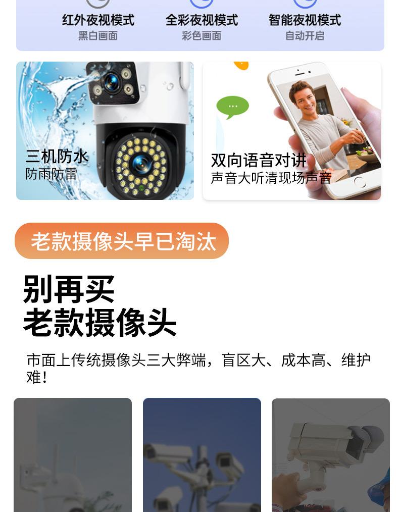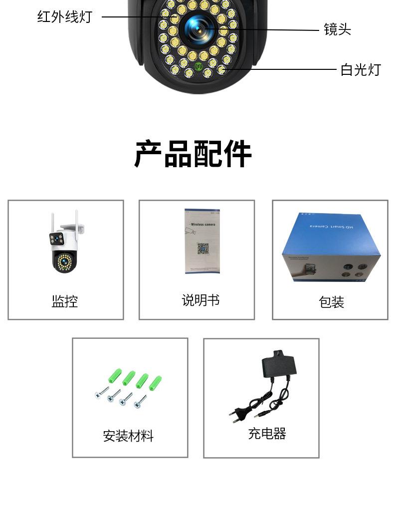 Câmera binocular transfronteiriça sem fio HD monitor de visão noturna wifi casa remoto panorâmico à prova d'água vigilância inteligente