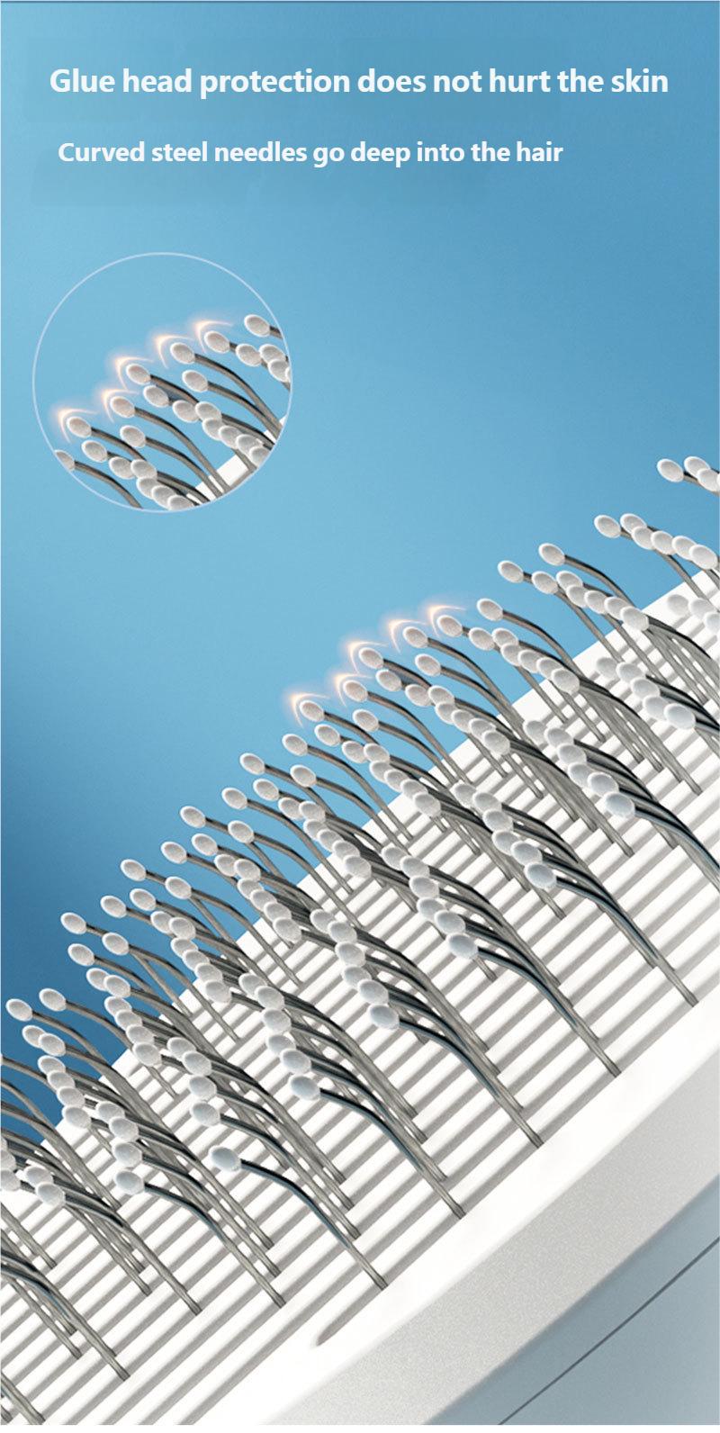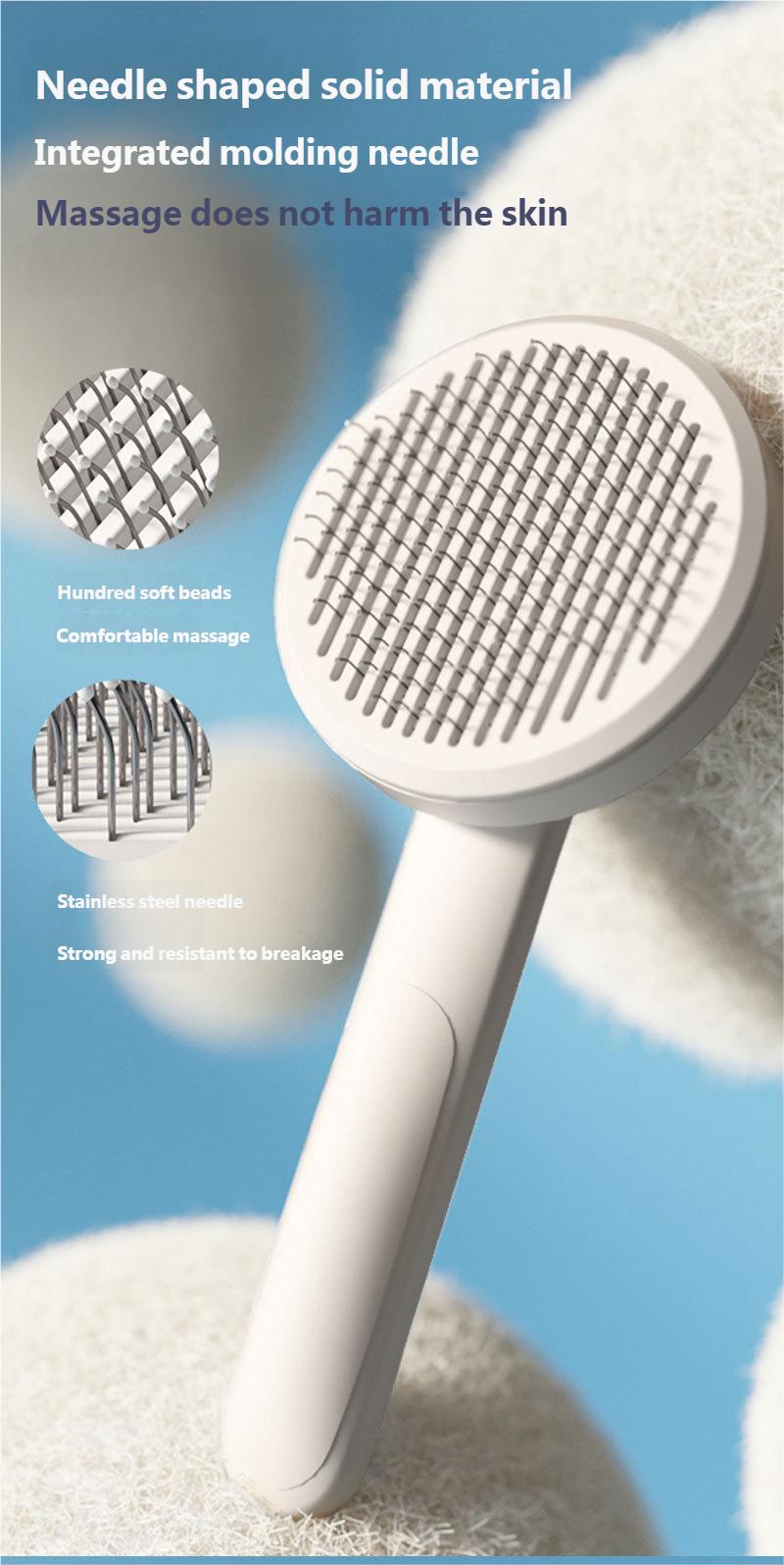 Animais de Estimação Limpos: escova para gato e cachorro para queda de pelos pode facilmente remover pelos soltos, nós, caspa e sujeira do seu animal de estimação, o que não só mantém seu animal de estimação limpo, mas também proporciona a você um ambiente doméstico limpo e higiênico Ótima Escova, Animais de Estimação Saudáveis: A escova de grooming para gatos com bolinhas redondas pode fazer massagem em animais de estimação e prevenir arranhões. As agulhas de aço inoxidável da escova para cães são projetadas com uma curvatura de 120 graus para alcançar melhor a pele do animal de estimação e promover a circulação sanguínea. Botão de limpeza com um clique: Escova para gatos com botão de liberação, você só precisa simplesmente apertar o botão e o pelo será super simples removido da escova para pelos de gato.. E nossa escova de tosa para cães é lavável, o que pode ser mantido limpo. Cabo Confortável e Antiderrapante: Nossa escova para queda de pelos de gato é projetada com uma empunhadura confortável e antiderrapante, e esta escova autolimpante para gatos também possui uma função de massagem para sua mão e você não se cansará facilmente ao escovar seu animal de estimação. Experiência de Escovação Agradável: Cuidar do seu animal de estimação pode promover o vínculo com ele. Nossa escova para animais de estimação é adequada para todas as raças e tipos de pelagem.. Com escova para queda de pelos de cães e gatos, seu amado animal de estimação vai aproveitar o momento da escovação ABS + Aço Inoxidável Embalagem de papel-plástico