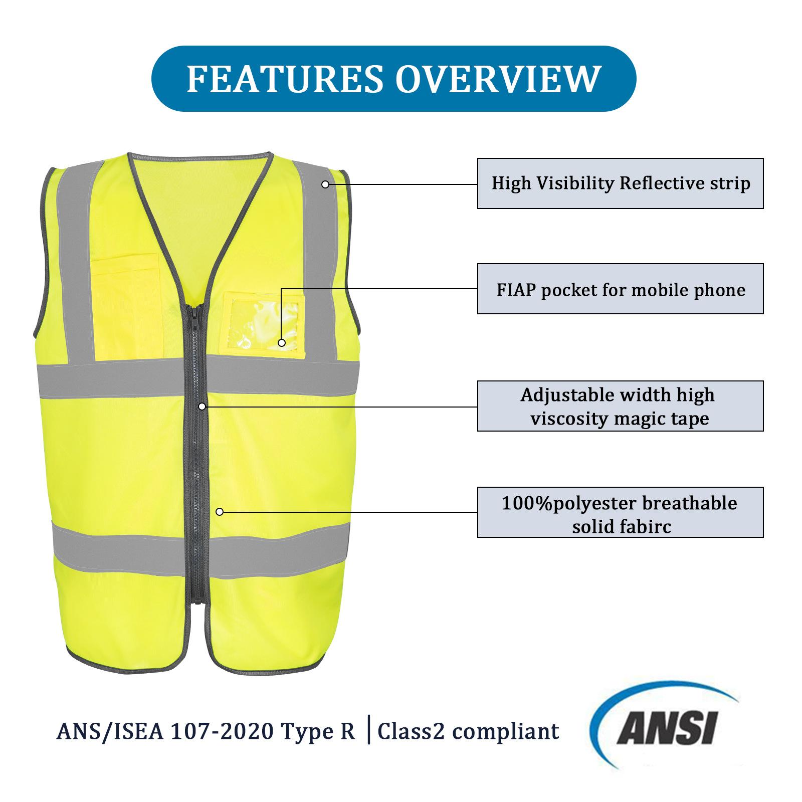 S/M*Fluorescent Yellow*120gsm Low-Elastic Yarn*Safety Vest*S-5XL