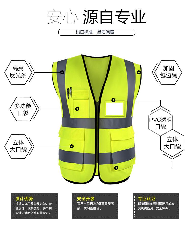Colete Refletivo Colete de Construção Colete de Segurança Tráfego Administração Rodoviária Uso em Carro Roupas Refletivas de Alta Visibilidade Segurança Fluorescente Estampado