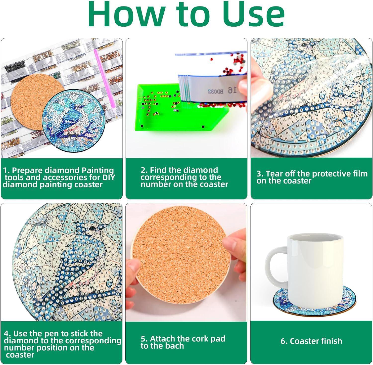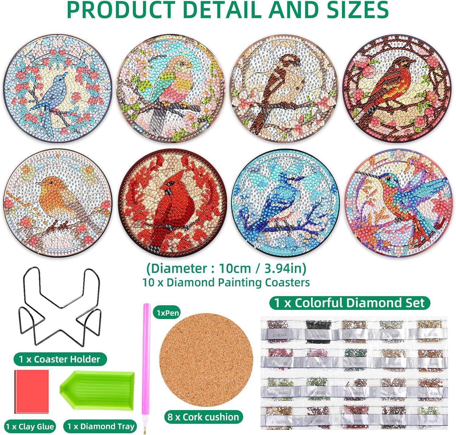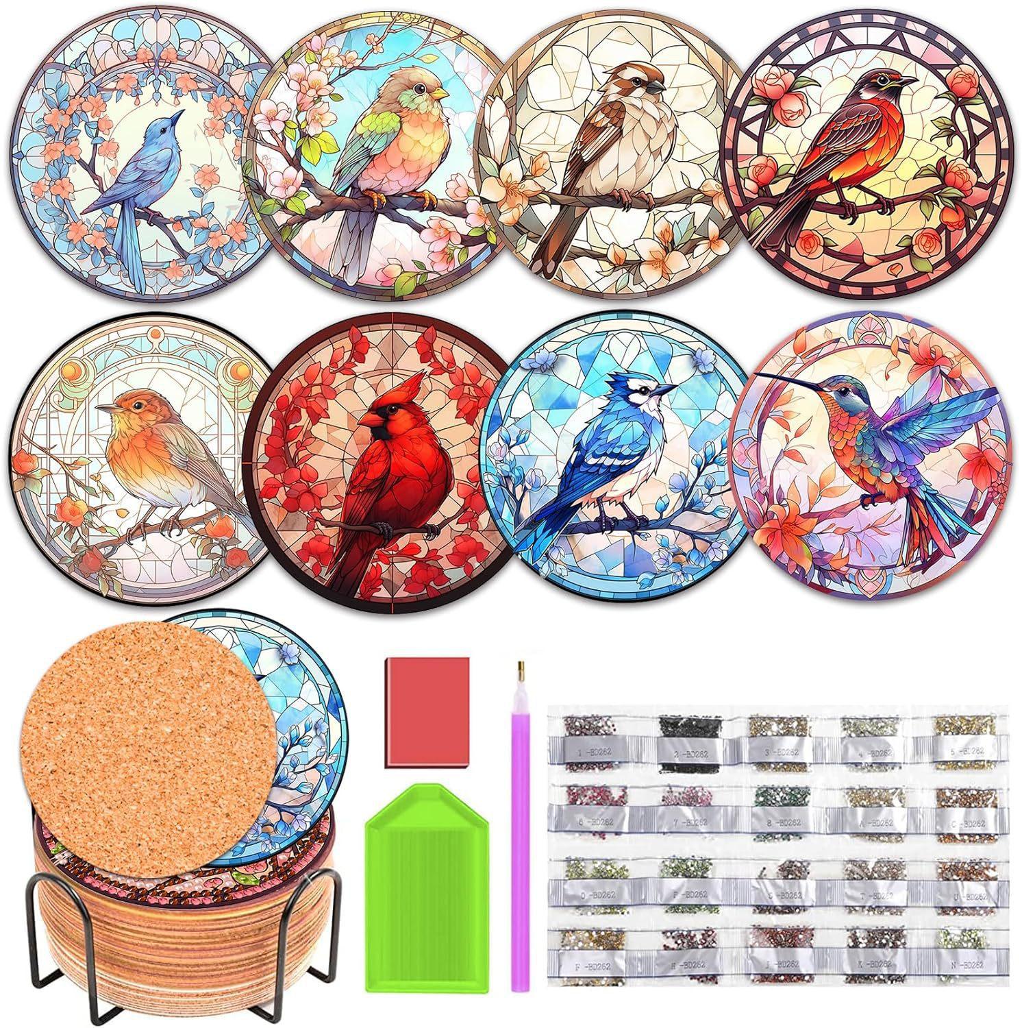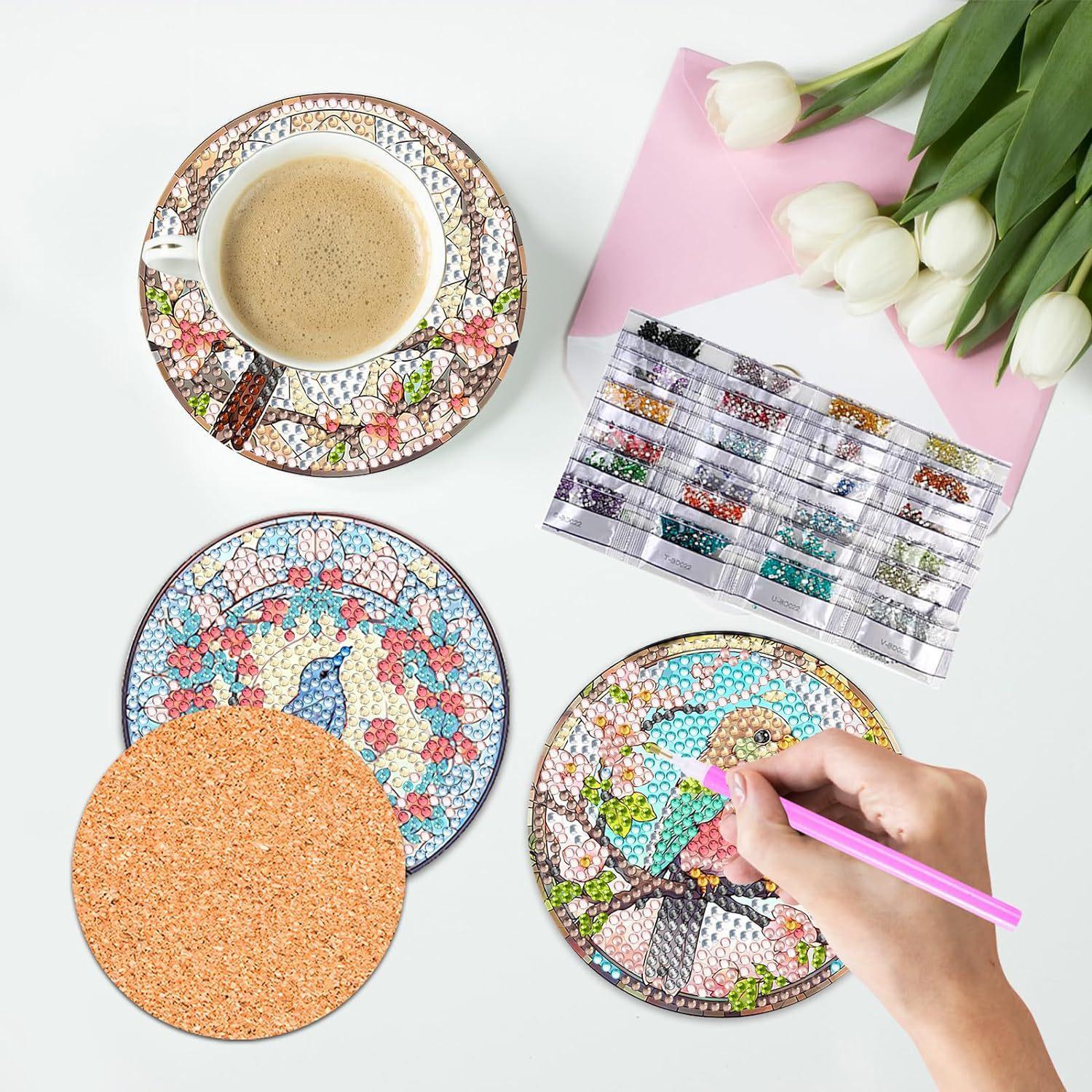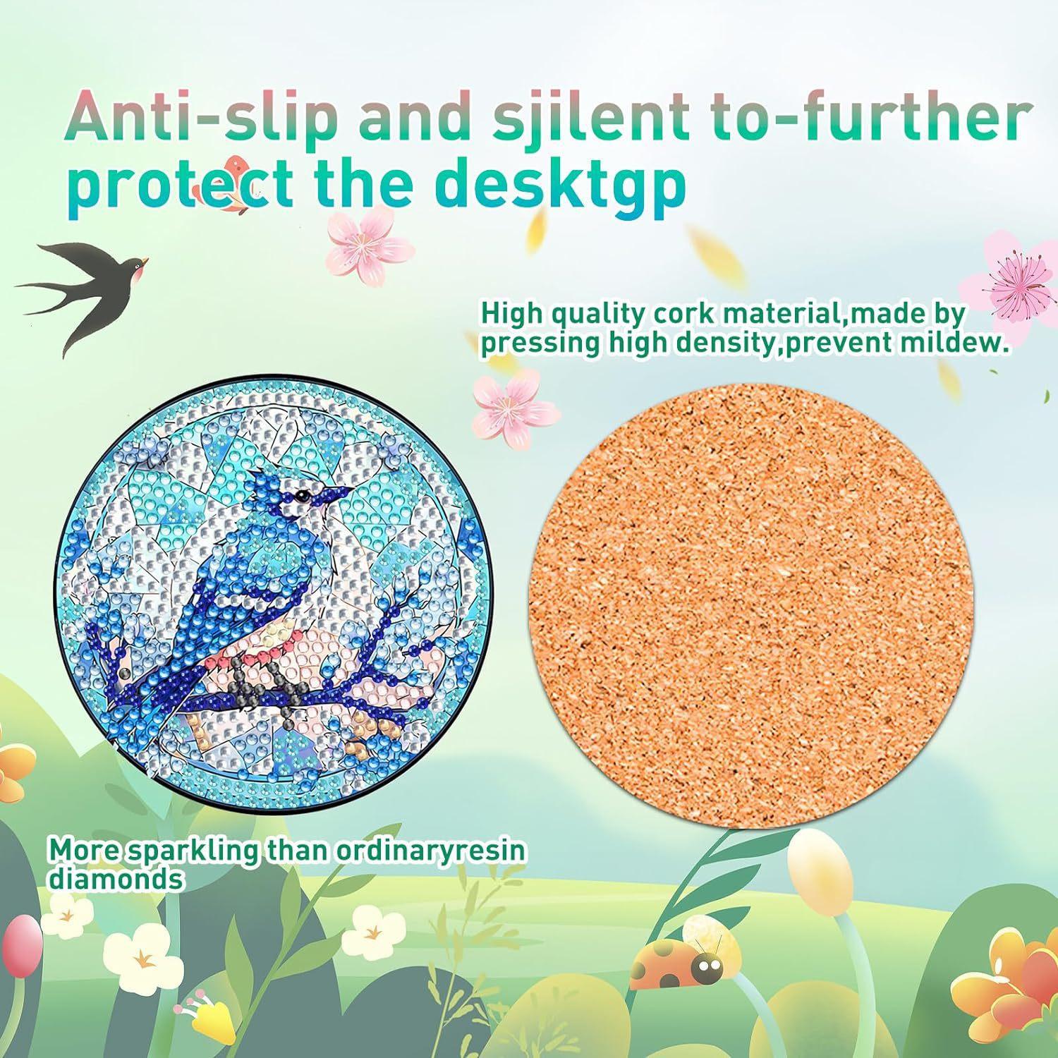 5D transfronteiriço novo 8 peças de DIY feito à mão madeira broca isolamento térmico antiderrapante pintura diamante 5D uma variedade de porta-copos de beija-flor com suporte