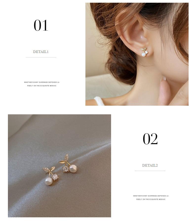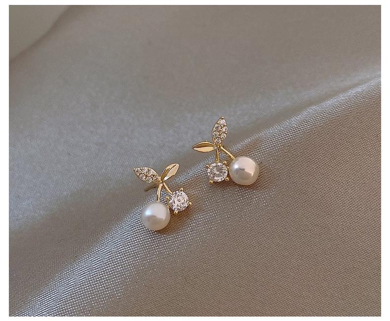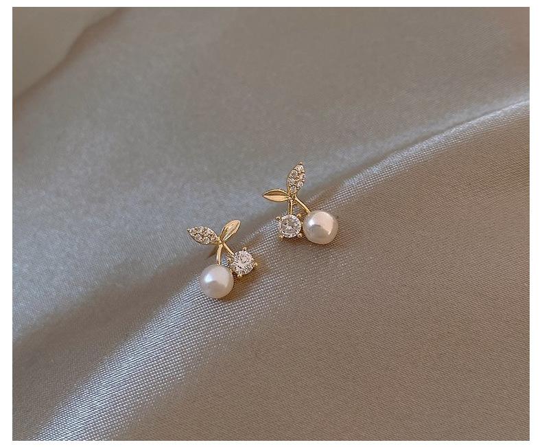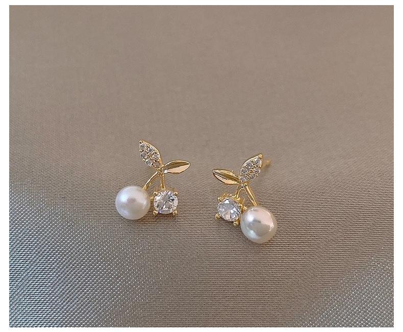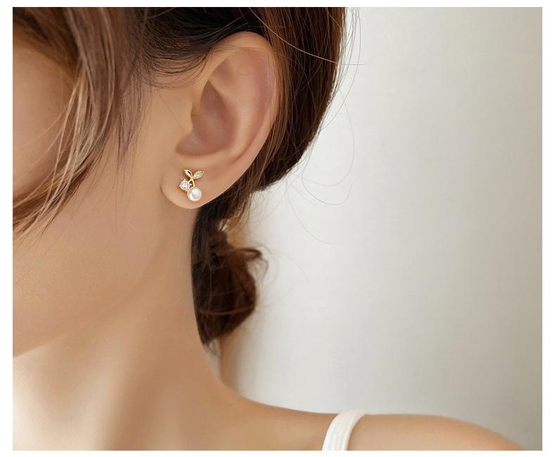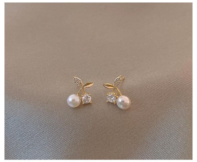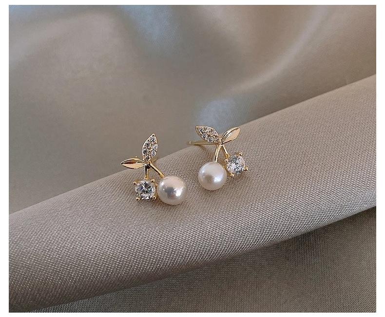 Brincos Pequenos de Cereja Femininos 2023 Novo Estilo Estilo Ocidental Micro-cravação Brincos Exquisitos Brincos Senso Avançado Design de Nicho Furo na Orelha