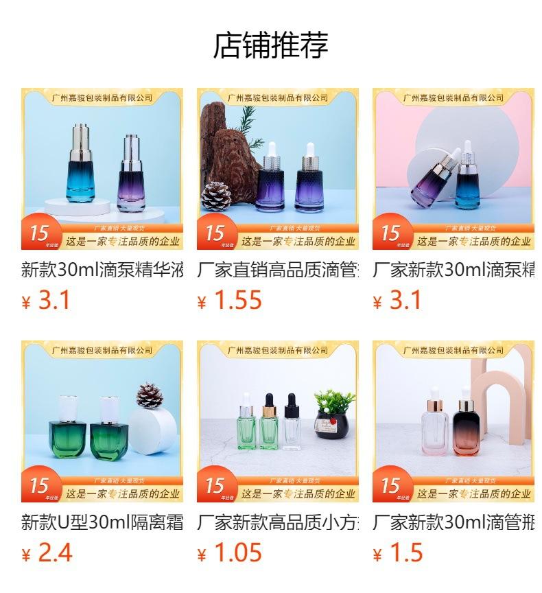 30ml transparent bottle + dropper + middle ring + plastic tip; transparent bottle; glass, 50ml transparent bot...