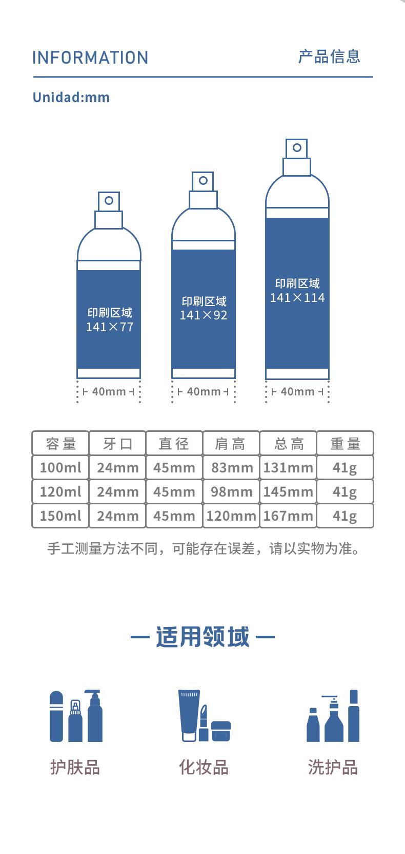 100ml; white bottle body + lotion pump head; pet, 100ml; white bottle body + spray pump head; pet, 100ml;trans...