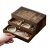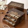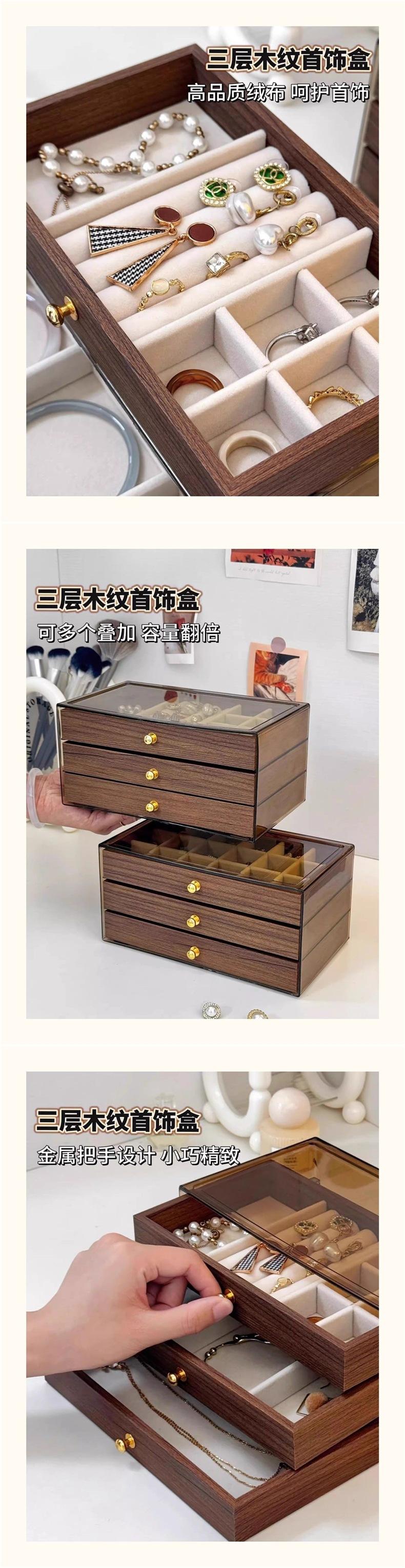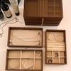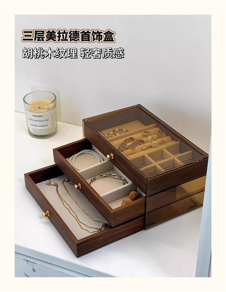 Caixa de Joias de Grande Capacidade Grão de Madeira Nogueira Anti-Oxidação Caixa de Armazenamento de Anéis Pulseiras Colares Brincos