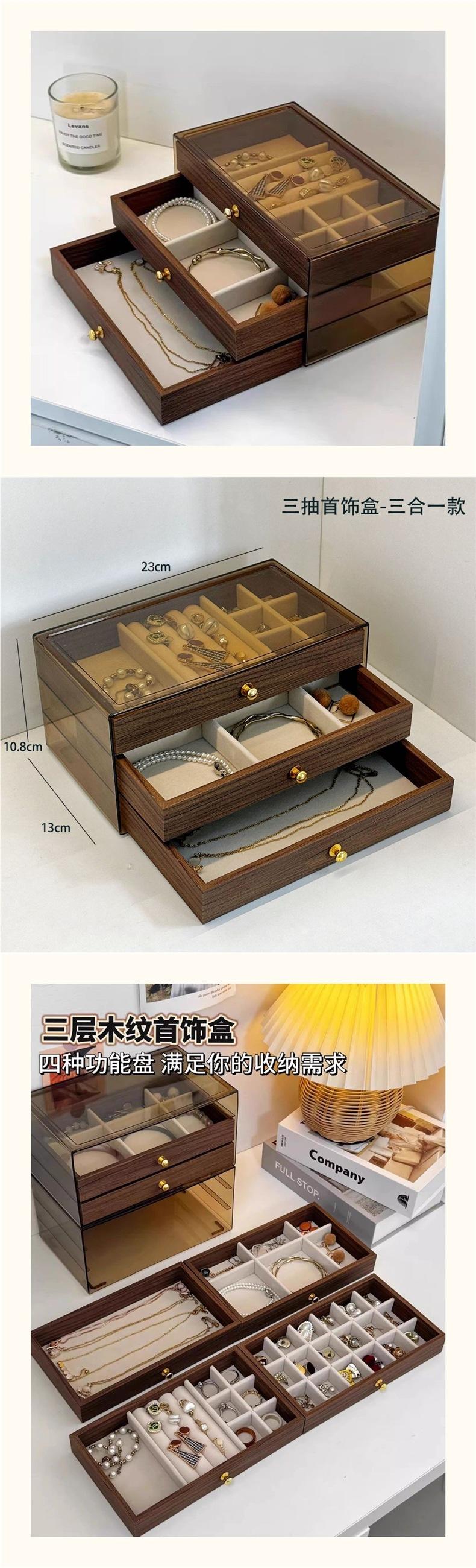 Three-drawer walnut wood A type;23.4*10.3*13.5, Three-drawer walnut B type; 23.4*10.3*13.5