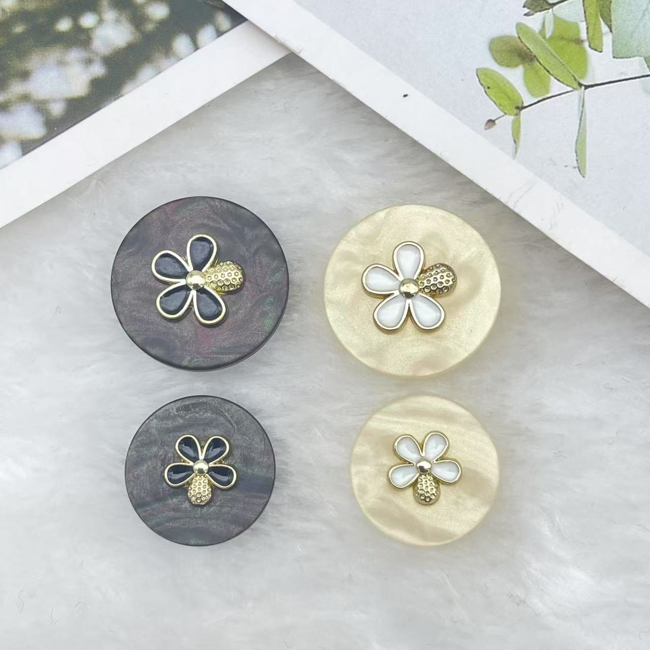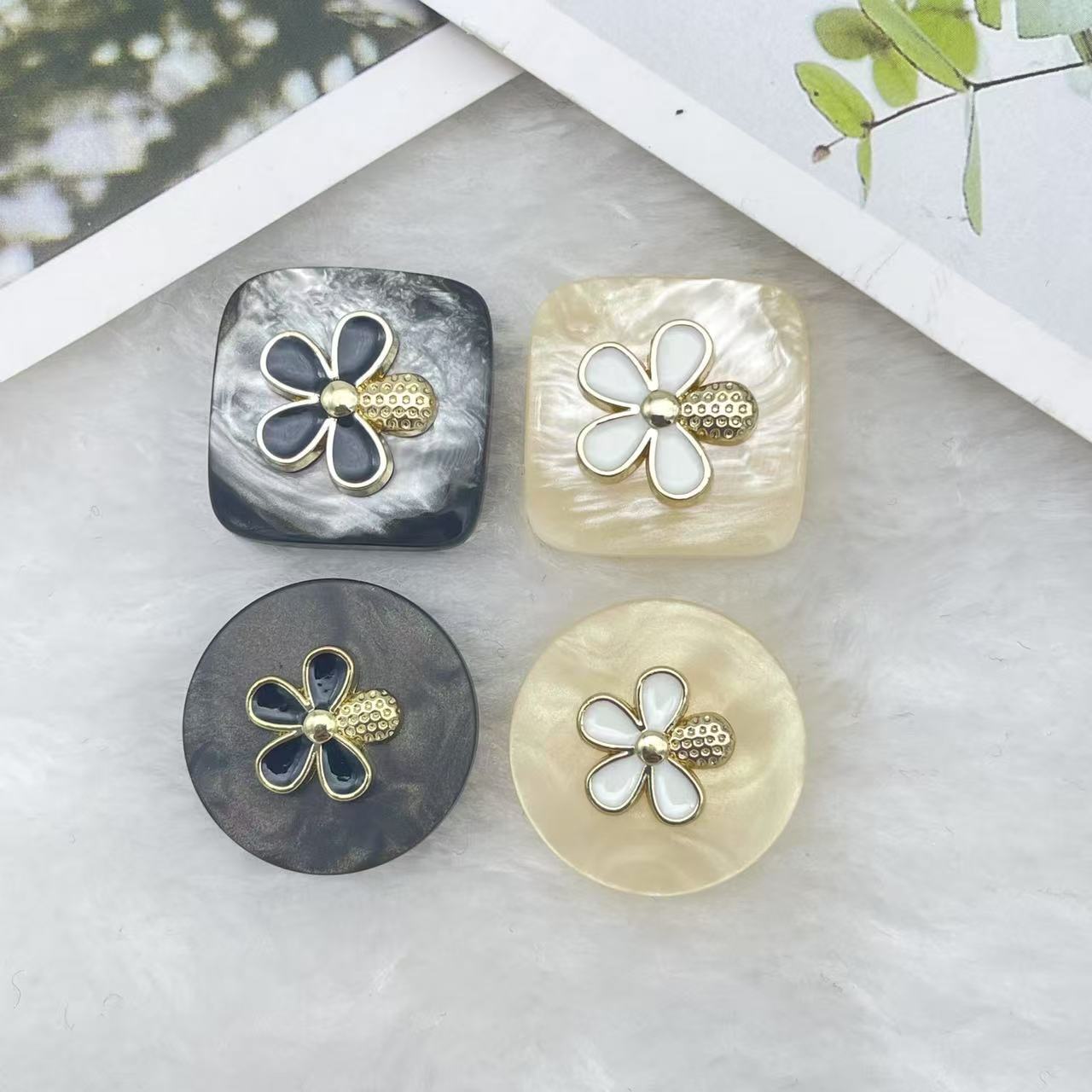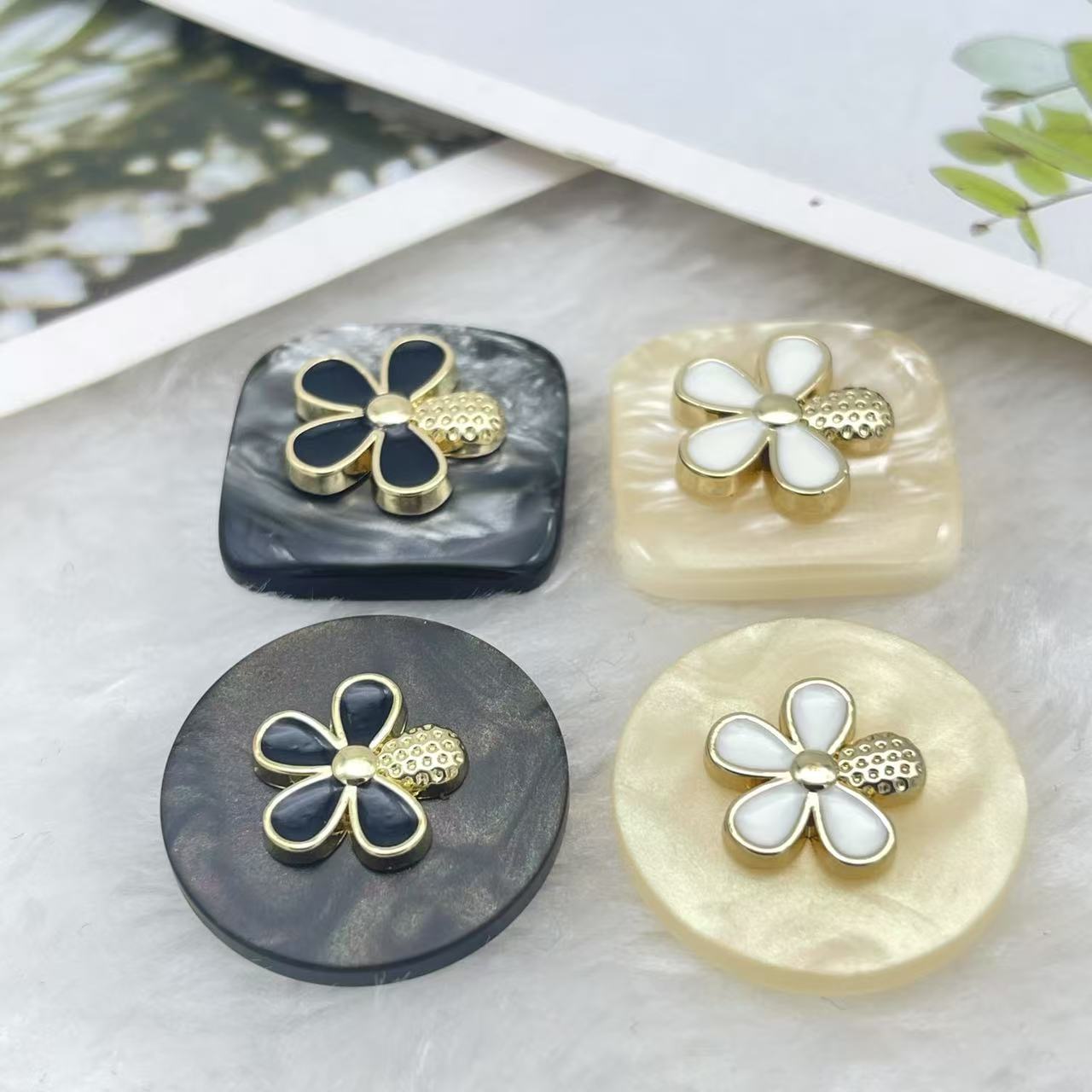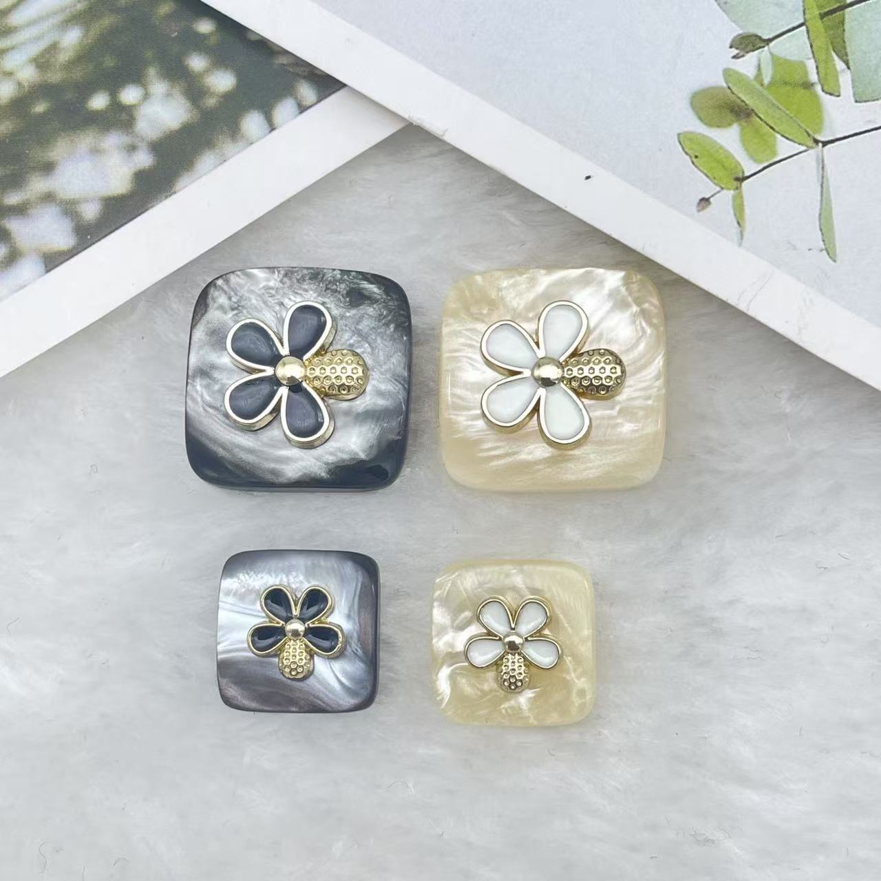 Fornecimento de Botões de Metal Dupla Resina, Botões Decorativos Redondos para Casaco de Lã, Botões Quadrados de Luxo Leve para Paletó