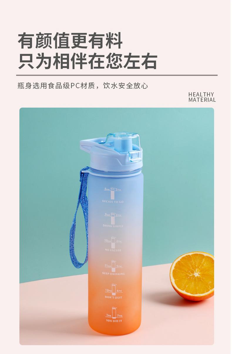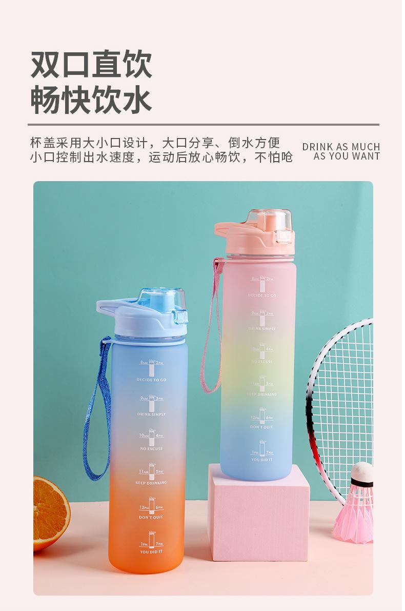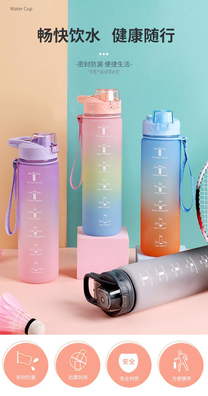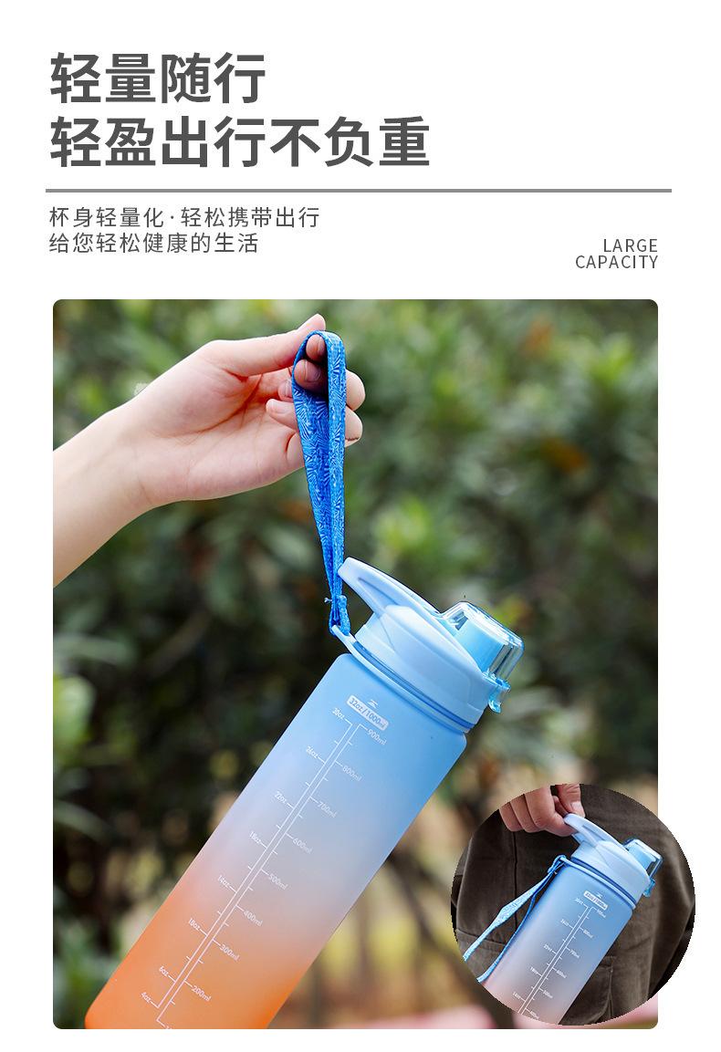 Frete Grátis Copo de Plástico de Grande Capacidade para Exportação, Copo de Água Esportivo Fosco Degradê de Verão 1L, Copo Espacial Portátil para Estudantes com Alça