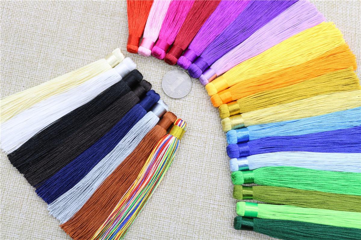 Borla nó chinês seda gelo poliéster 12cm pingente de leque acessórios de joalheria DIY espigão pequeno vertical atacado de fábrica