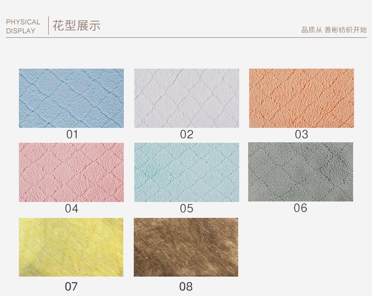 Brocado de Poliéster Jacquard Dupla Face Veludo Coral em Estoque Outono e Inverno Toalha de Banho Absorvente Roupão Touca para Secar Cabelo Tecido de Veludo Coral