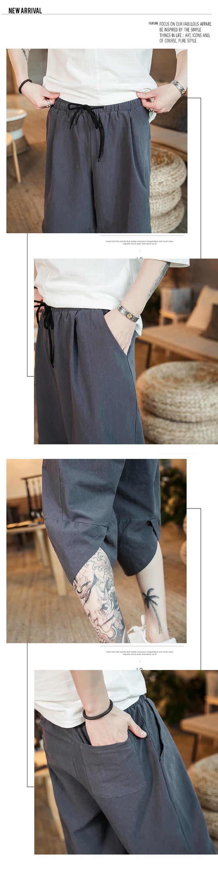 Verão 2019 novo estilo chinês algodão linho calças cropped casuais masculinas retrô plus size moda calças harem de linho masculinas