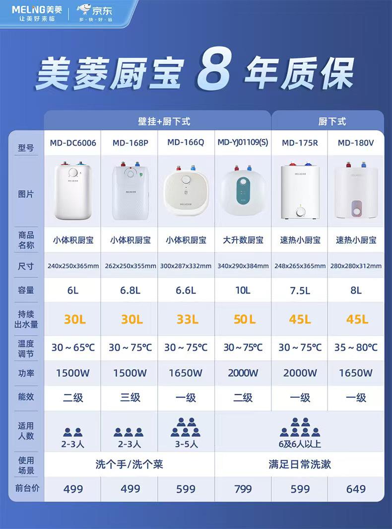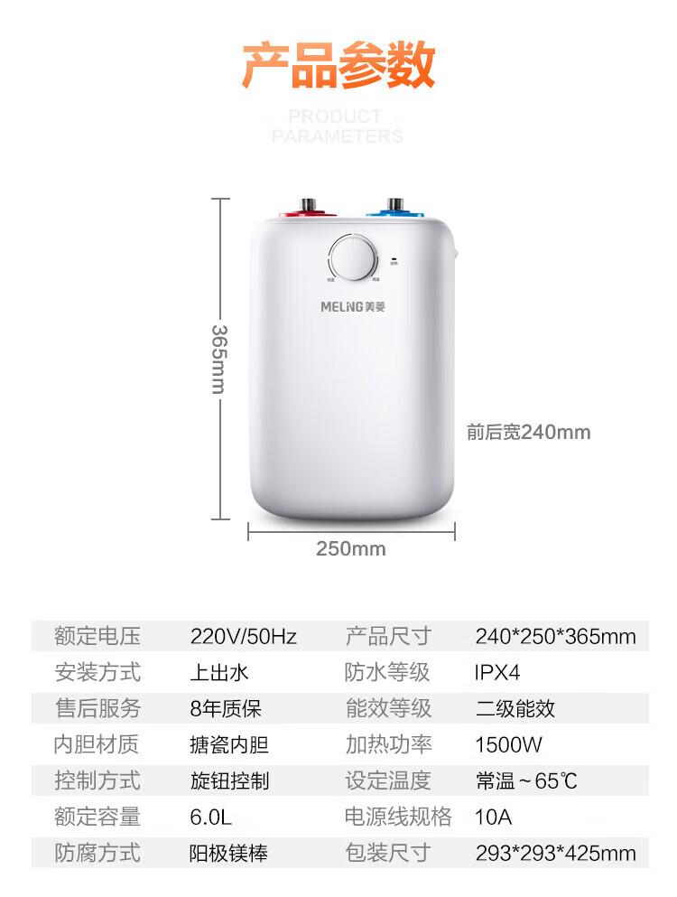 Meiling Aquecedor Rápido Pequeno para Cozinha Tesouro Atacado Doméstico Cozinha Aquecedor de Água Quente Instantâneo Armazenamento 6L Abaixo da Bancada Tesouro de Água Quente DC6006