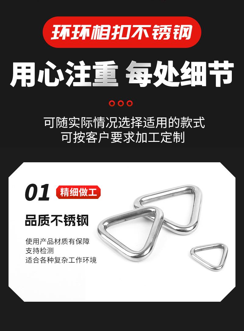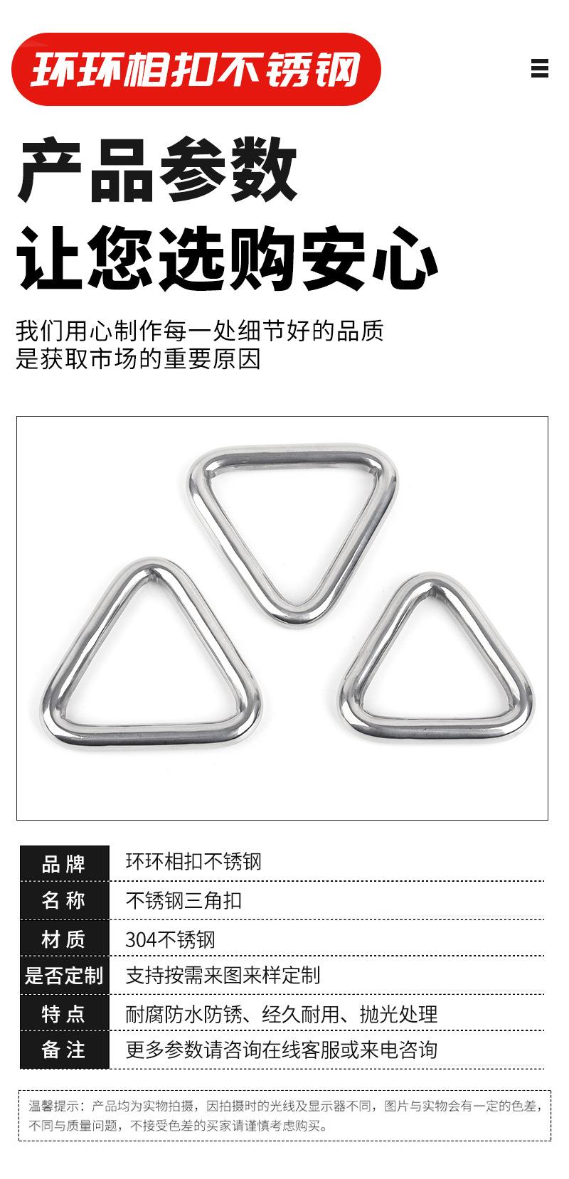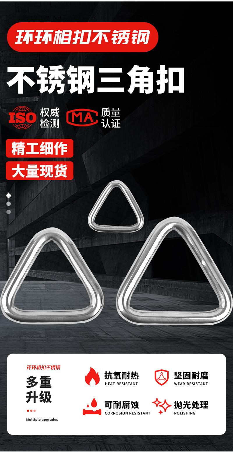 Fivela Triangular de Aço Inoxidável 304 Fivela de Conexão para Cinta de Bagagem Acessórios DIY Anel Sólido de Aço Fivela Trava Anel de Elevação com Capacidade de Carga em Estoque