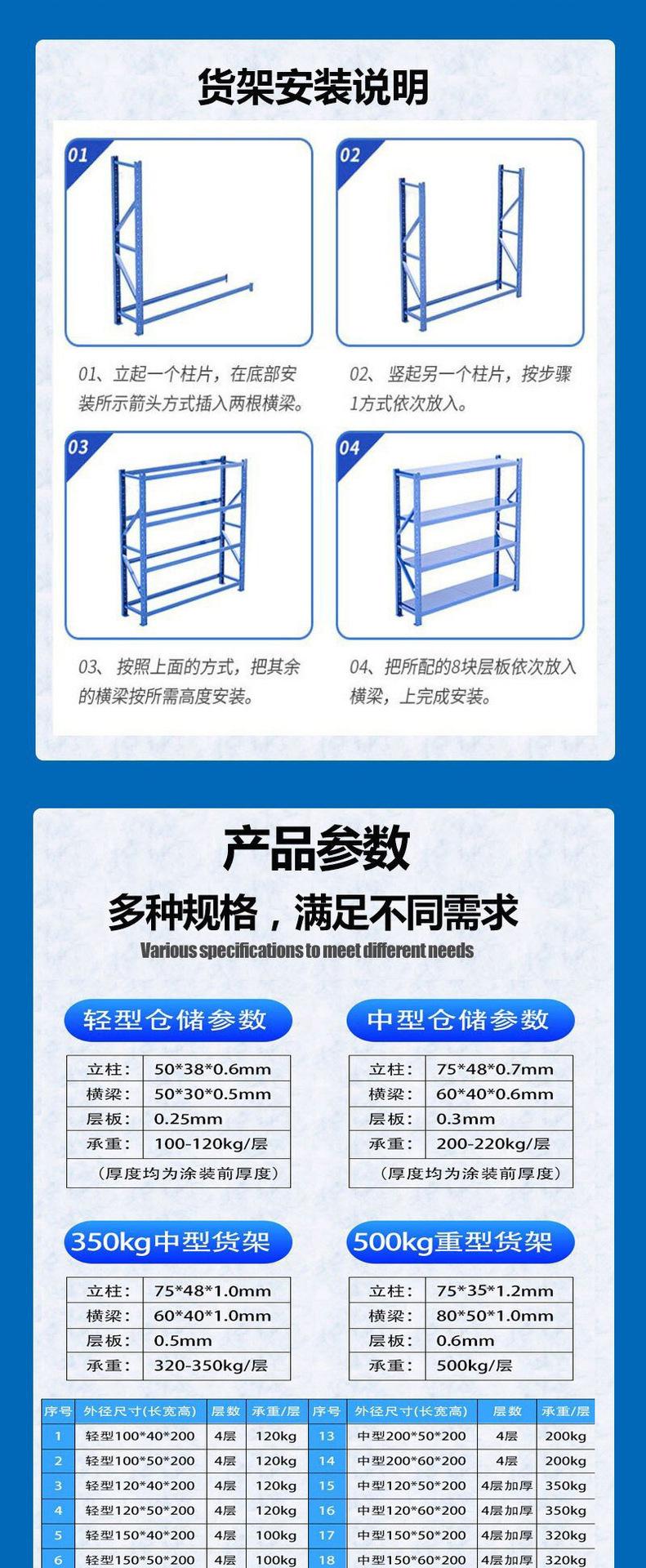 1000*400*2000*4 layers (120kg) blue-main frame, 1000*400*2000*4 layers (120kg) blue-secondary frame, 1000*500*...
