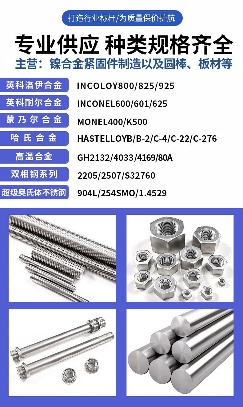 Liga de alta temperatura GH3030 parafusos sextavados internos e externos porcas parafusos porcas alta resistência processamento de liga especial personalização